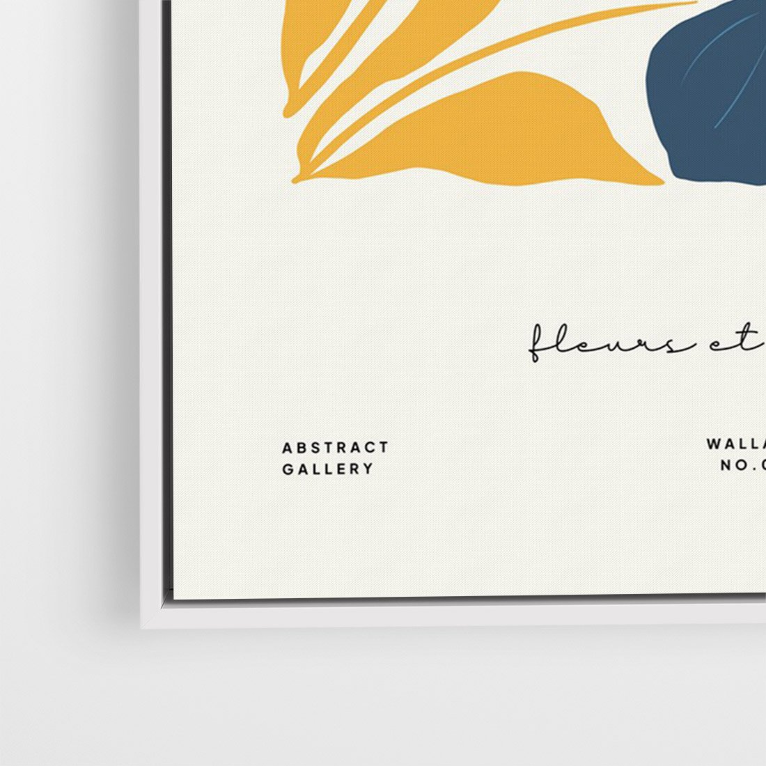 Ta nowoczesna sztuka ukazuje niebieskie kwiaty w nowym świetle, z subtelnie wkomponowaną typografią. Kompozycja tworzy spokojny i elegancki nastrój, zapraszając do odkrywania piękna i spokoju natury.