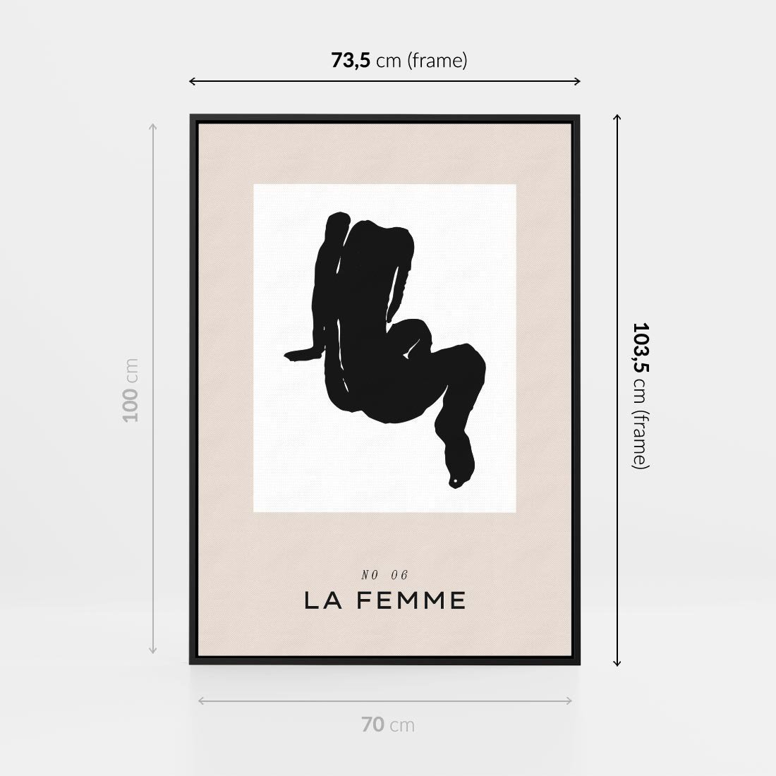To abstrakcyjne dzieło sztuki przedstawia siedzącą postać w wyrazistych odcieniach czerni, bieli i beżu. Poprzez minimalistyczny zabieg kolorystyczny, plakat emanuje spokojem i elegancją. Abstrakcyjna forma dodaje głębi i intrygującego wymiaru, zachęcając widza do interpretacji i odkrywania ukrytych znaczeń. Przywołuje piękno ludzkiej sylwetki w kontekście abstrakcyjnej sztuki.