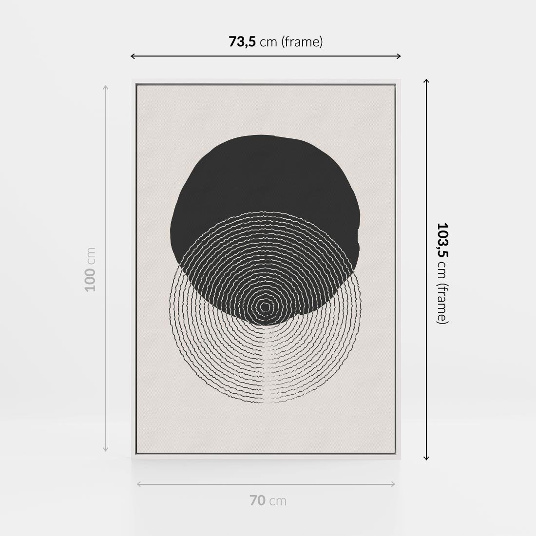 To wyjątkowe dzieło sztuki prezentuje abstrakcyjną kompozycję opartą na formach okręgów. W stonowanych odcieniach czerni i beżu, tworzy minimalistyczny efekt, który przyciąga uwagę swoją harmonią i równowagą. Każdy okrąg jest jak element układanki, składający się na spójną całość. Ta abstrakcyjna sztuka pobudza wyobraźnię i pozwala na odkrywanie różnych interpretacji w ramach minimalistycznego stylu.