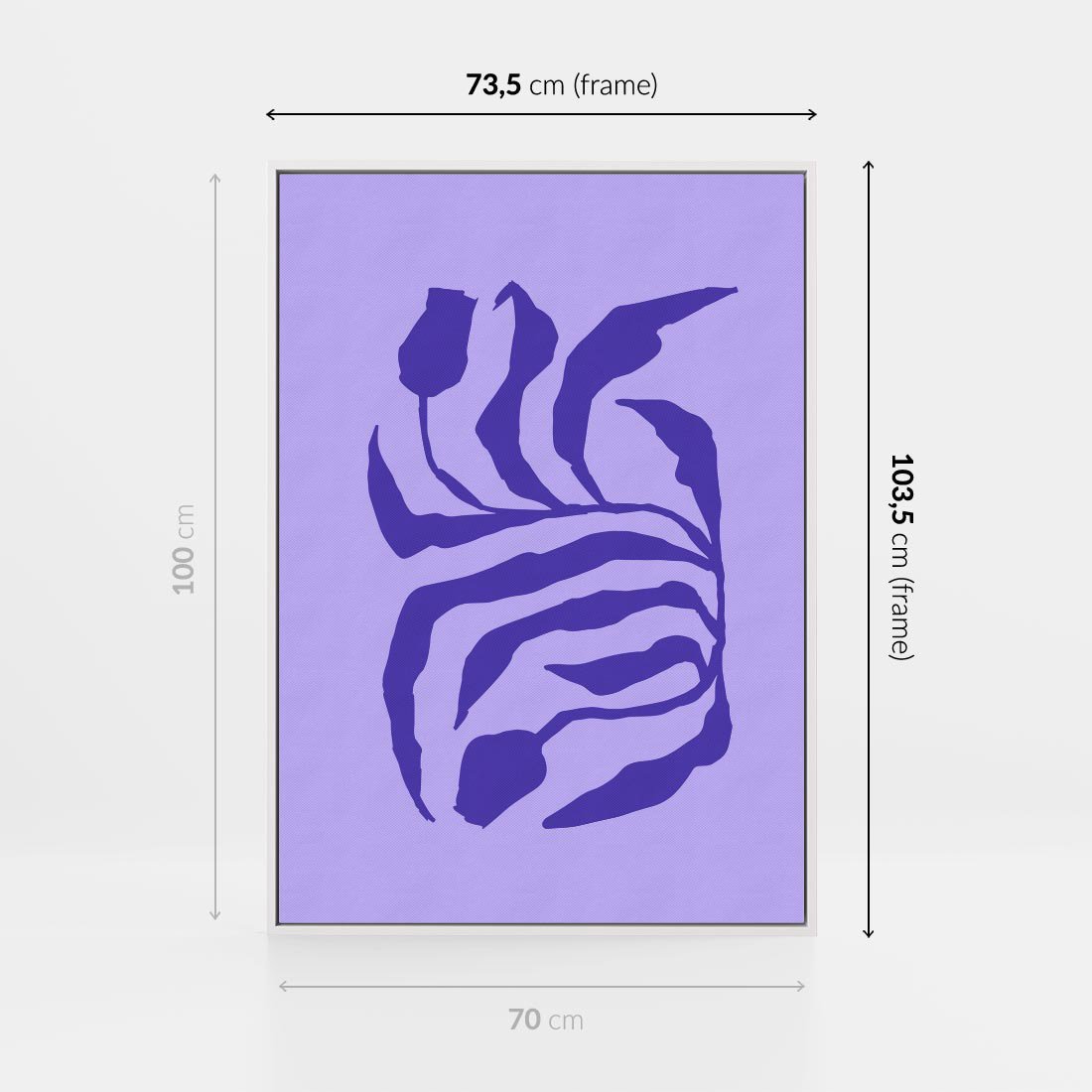 Obraz w ramie 70x100 - Boho Sztuka Wolności - kwiaty, energetyczne fioletowe tło - rama biała