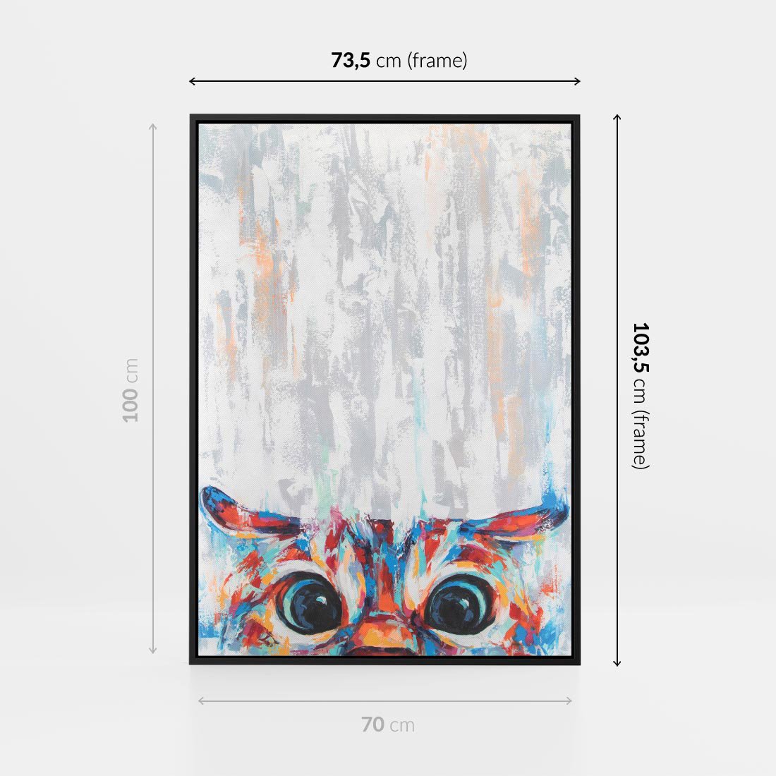 Obraz w ramie 70x100 - Co ja Widzę - obraz olejny, śmieszny obraz kota - rama czarna