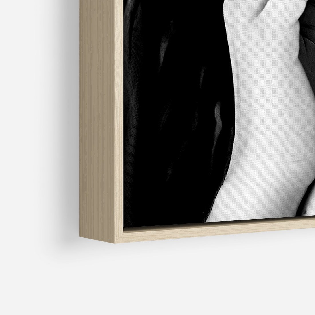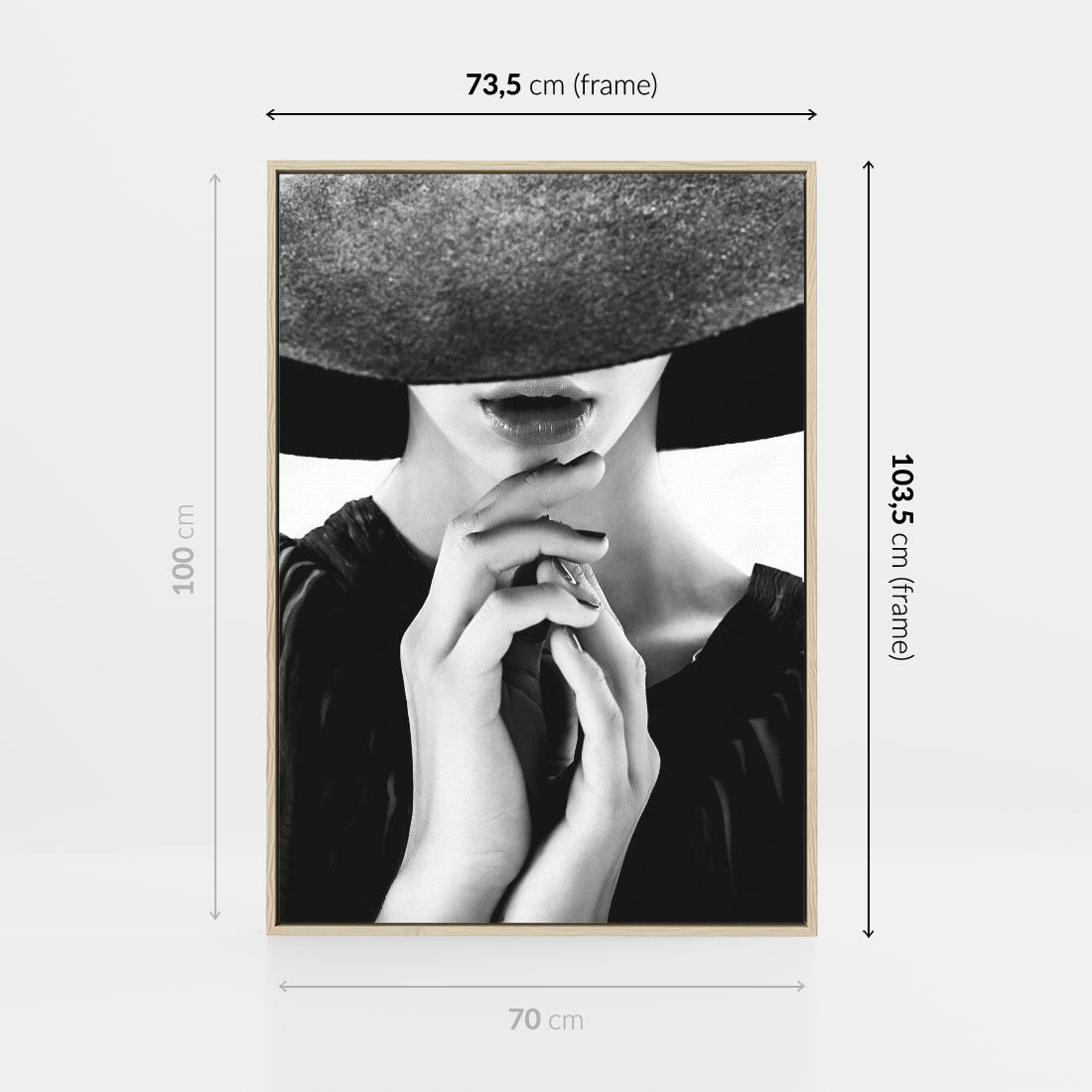 Obraz w ramie 70x100 - Czarna Elegancja - fotografia czarno biała, zbliżenie portret kobiety w czerni - rama drewno
