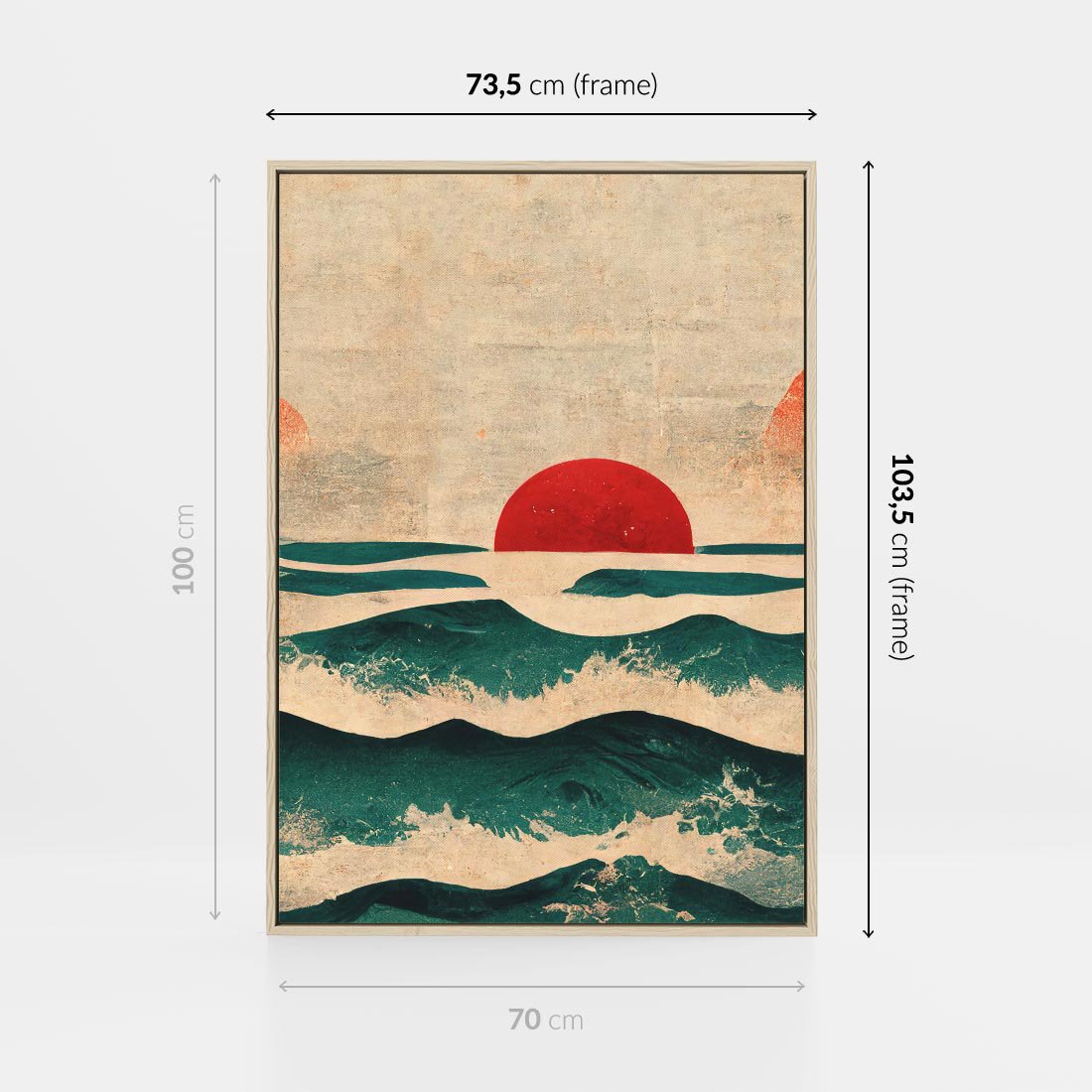 Obraz w ramie 70x100 - Czerwone Melodie - japońska sztuka, zachód słońca nad oceanem - rama drewno
