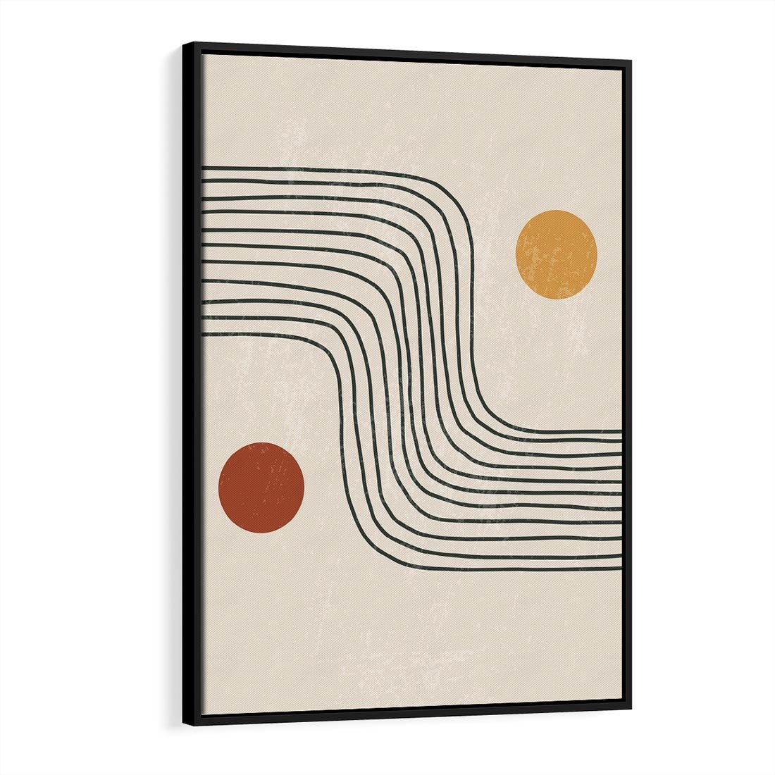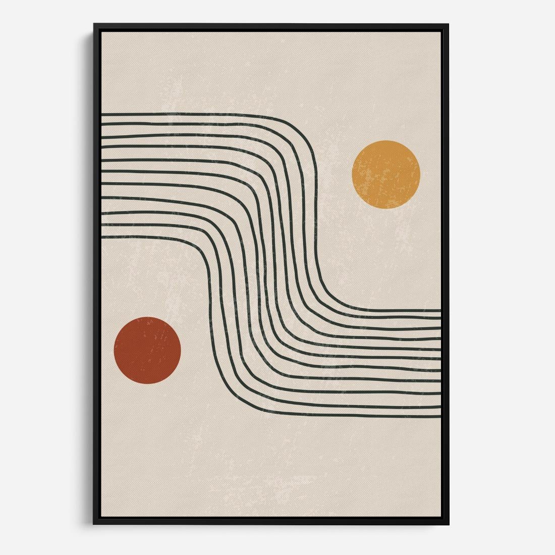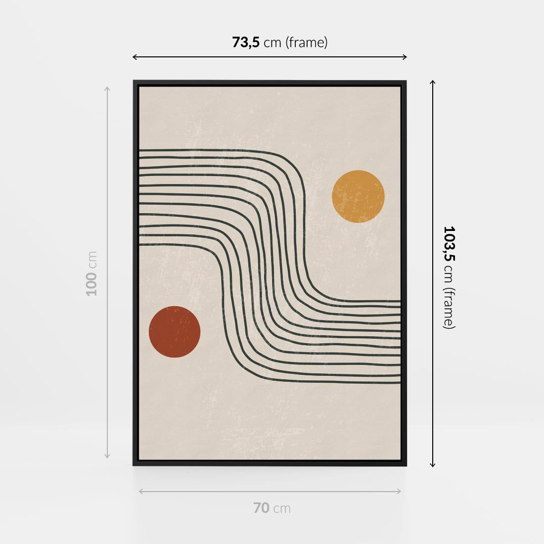 Nasza abstrakcyjna sztuka łączy boho kształty z minimalizmem, idealnie pasującymi do nowoczesnych wnętrz. To twórcze połączenie wprowadza do Twojej przestrzeni zarówno artystyczną ekspresję, jak i spokojną harmonię, tworząc wyjątkowy i unikalny wygląd.
