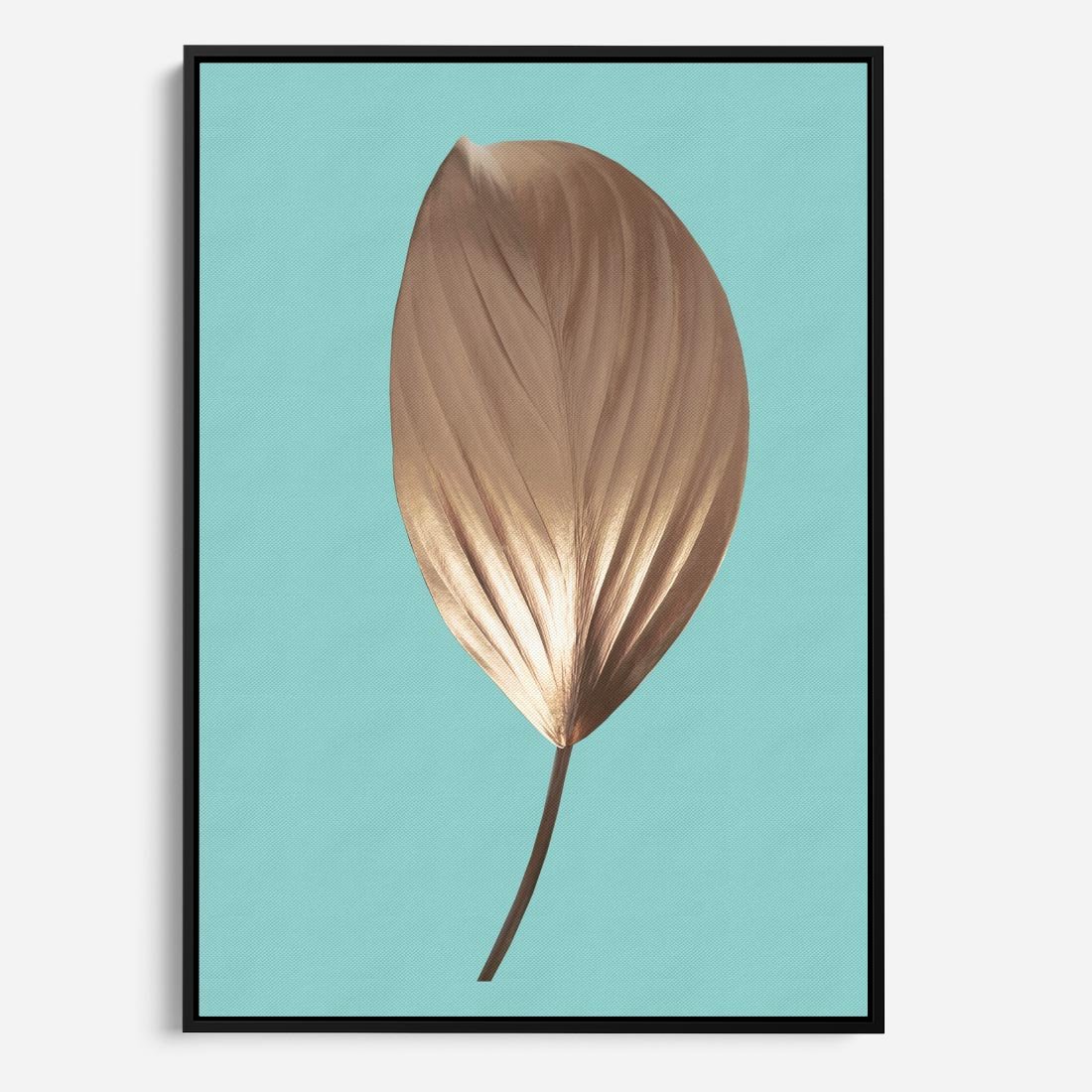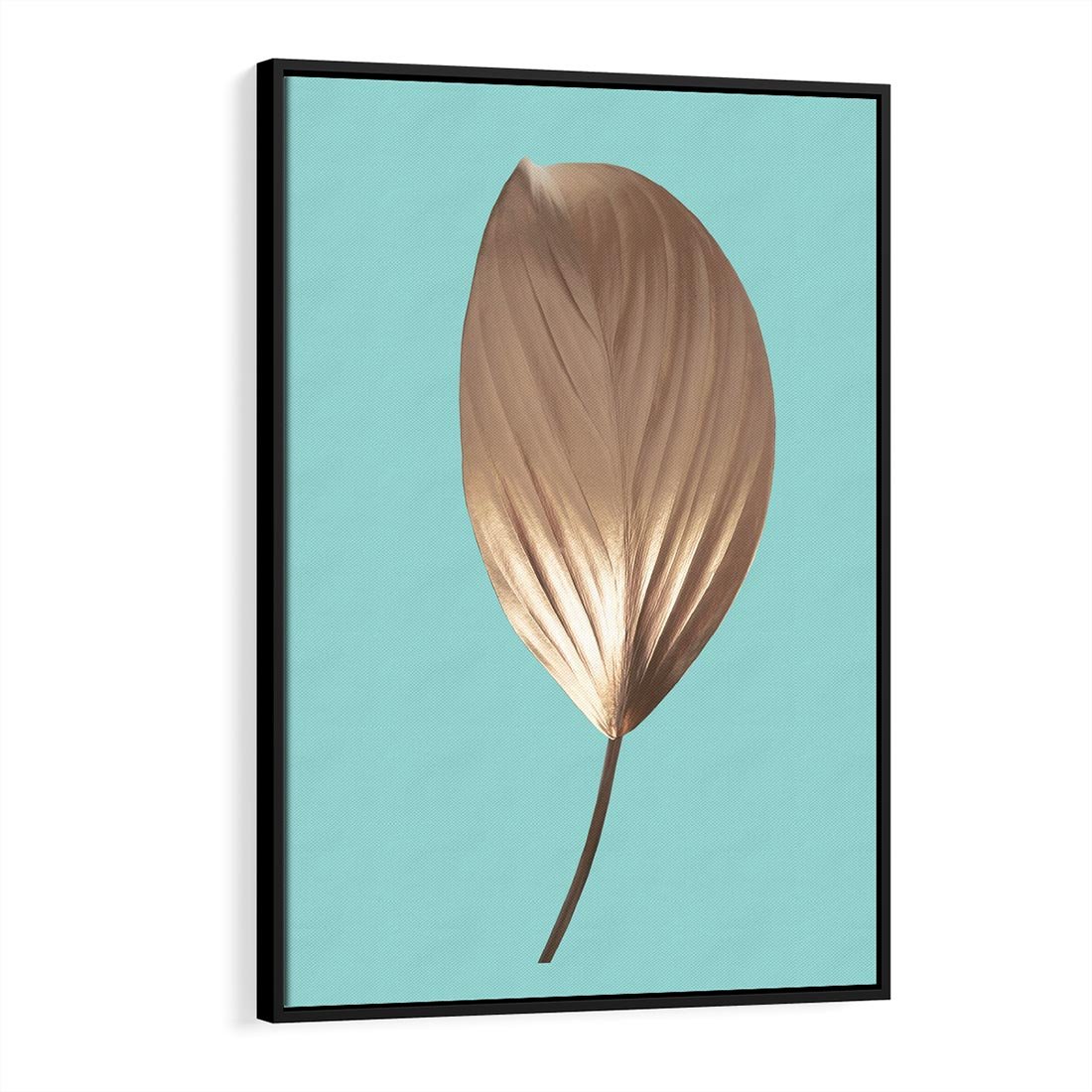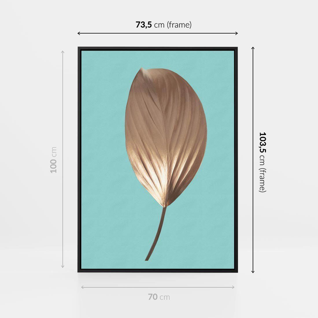 Obraz w ramie 70x100 - Delikatna Harmonia - złote, liście - rama czarna