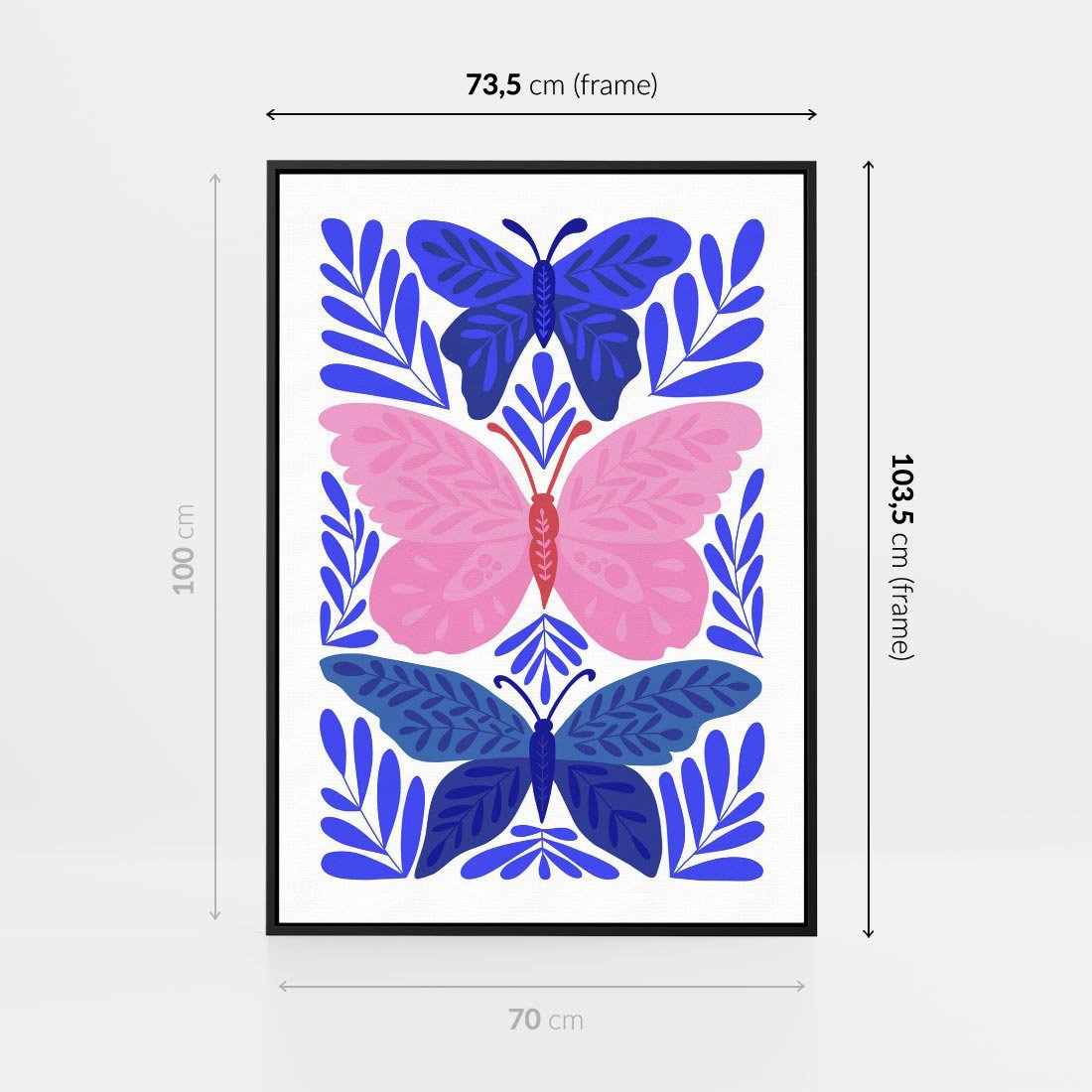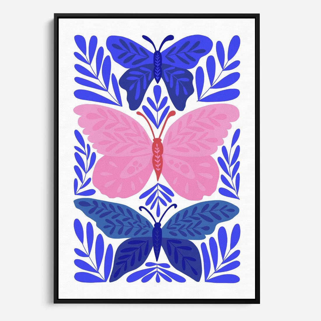 Obraz w ramie 70x100 - Delikatna Symfonia Natury - motyle, rośliny - rama czarna