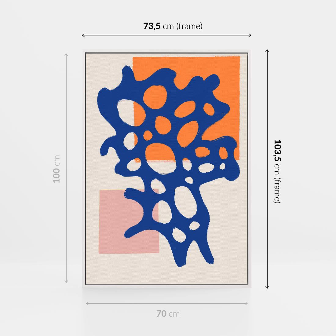 Ten nowoczesny plakat to zbiór abstrakcyjnych geometrycznych kształtów w intensywnych odcieniach pomarańczu i granatu. To dzieło sztuki wnosi do Twojej przestrzeni energię i nowoczesność, jednocześnie pozostając wiernym abstrakcyjnym korzeniom. Idealny wybór dla tych, którzy cenią sobie wyraziste wzory i nowoczesny design.