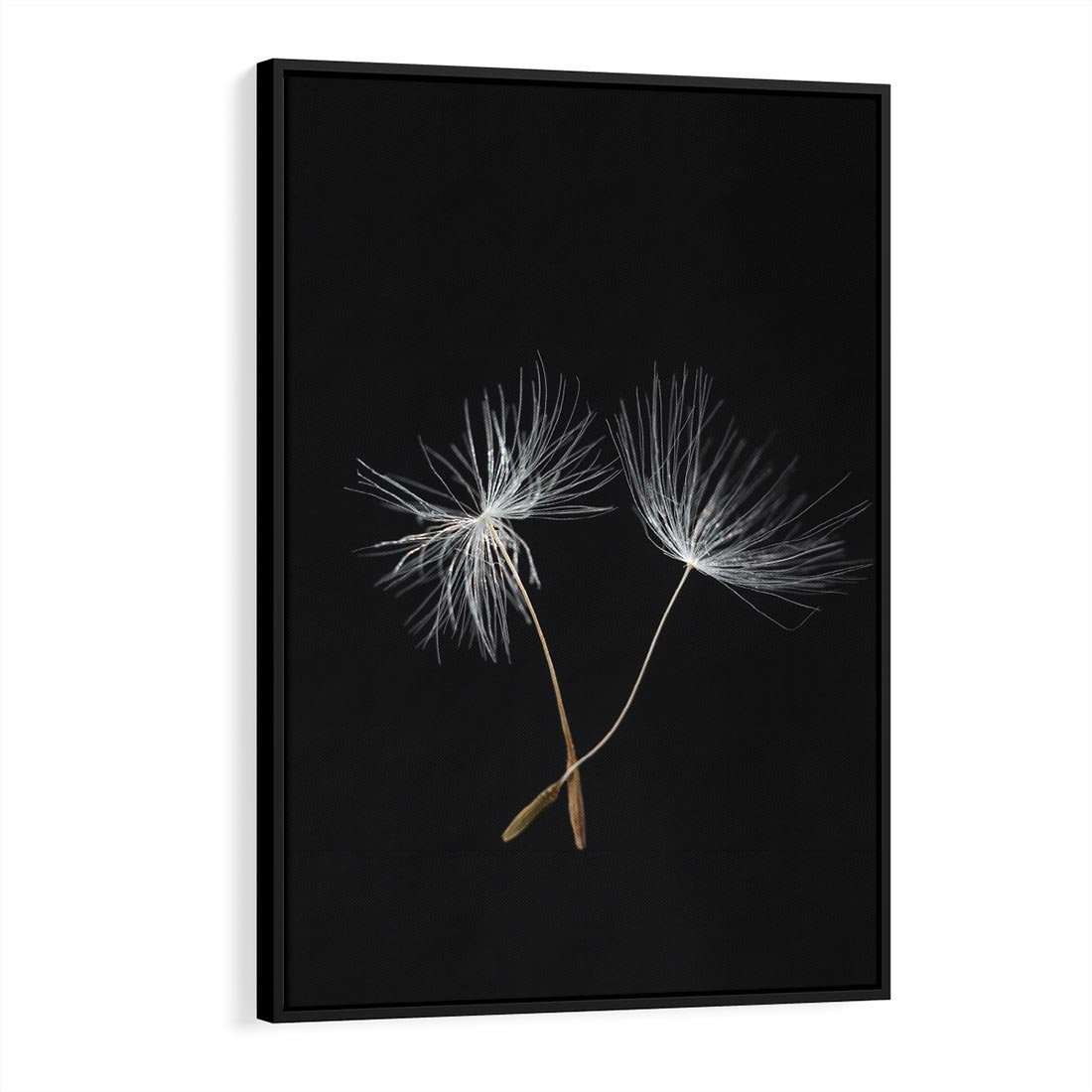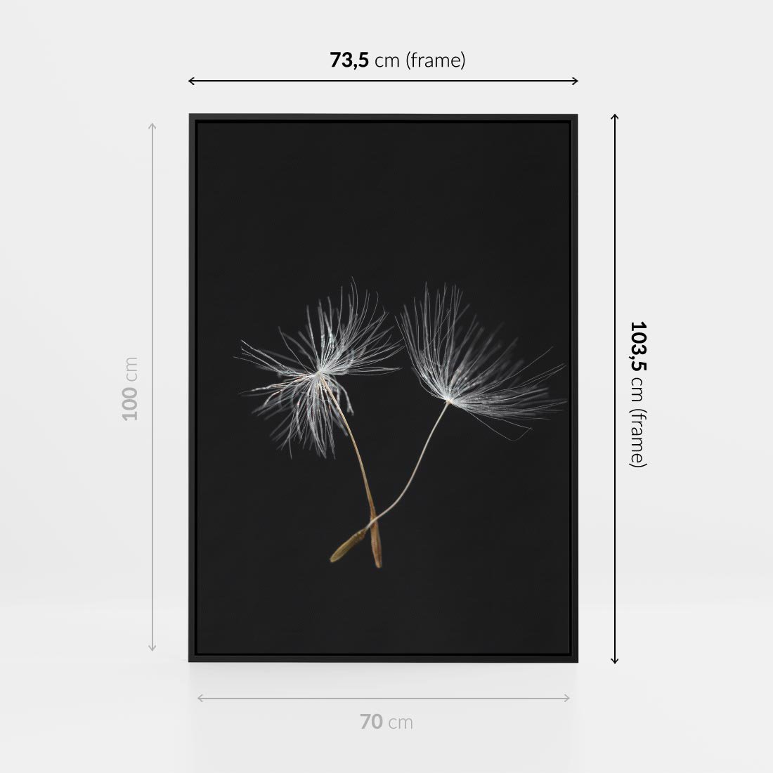 Obraz w ramie 70x100 - Delikatność Wiatru - dmuchawce, makro - rama czarna
