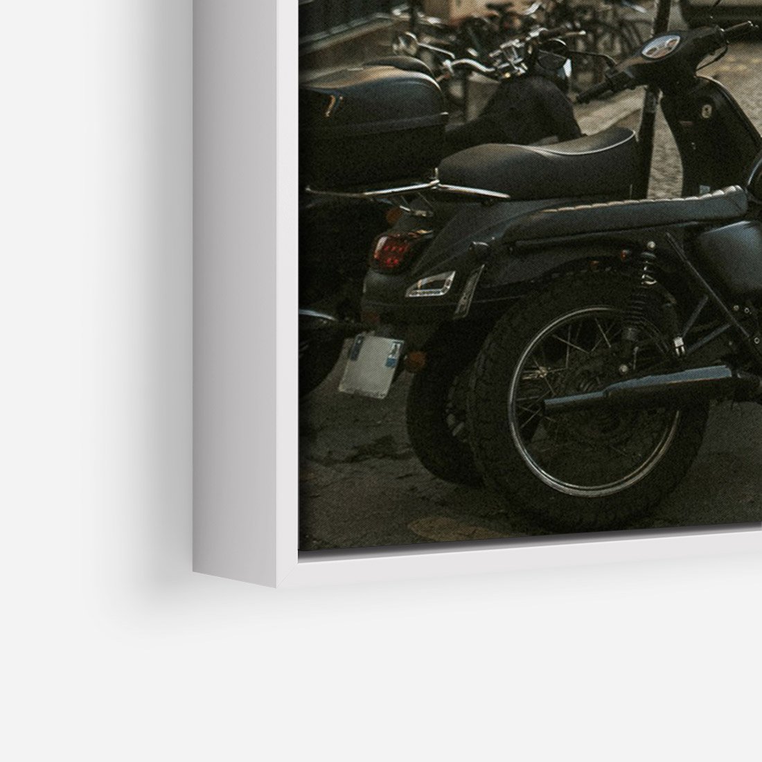 Obraz w ramie 70x100 - Ducha Przygody - motor, uliczka - rama biała