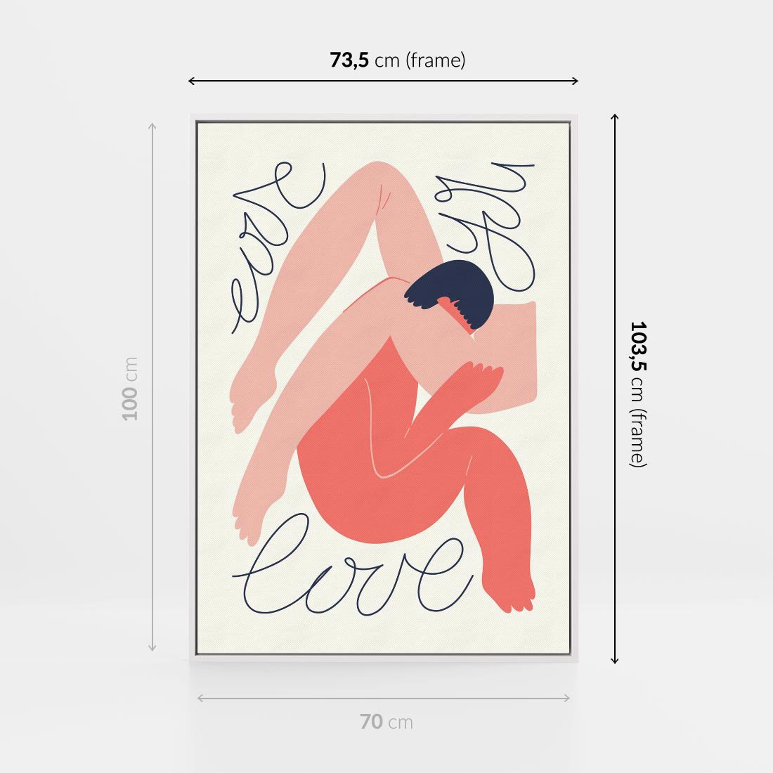 Obraz w ramie 70x100 - Dźwięk ciszy na płótnie - para zakochanych, graficzny obraz - rama biała