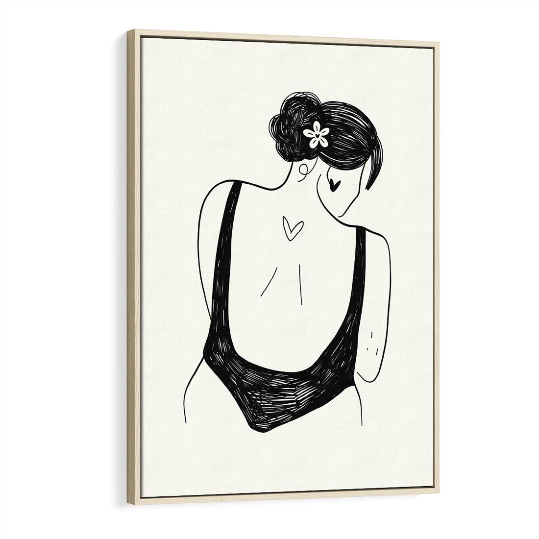 Ten nowoczesny rysunek uchwycił esencję piękna kobiecego ciała, prezentując delikatną harmonię między kobietą a sztuką w formie wyjątkowej kompozycji.
