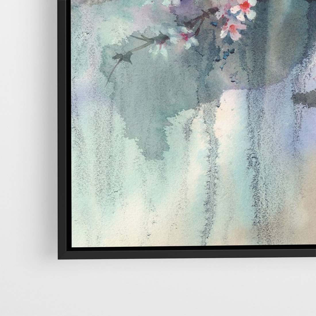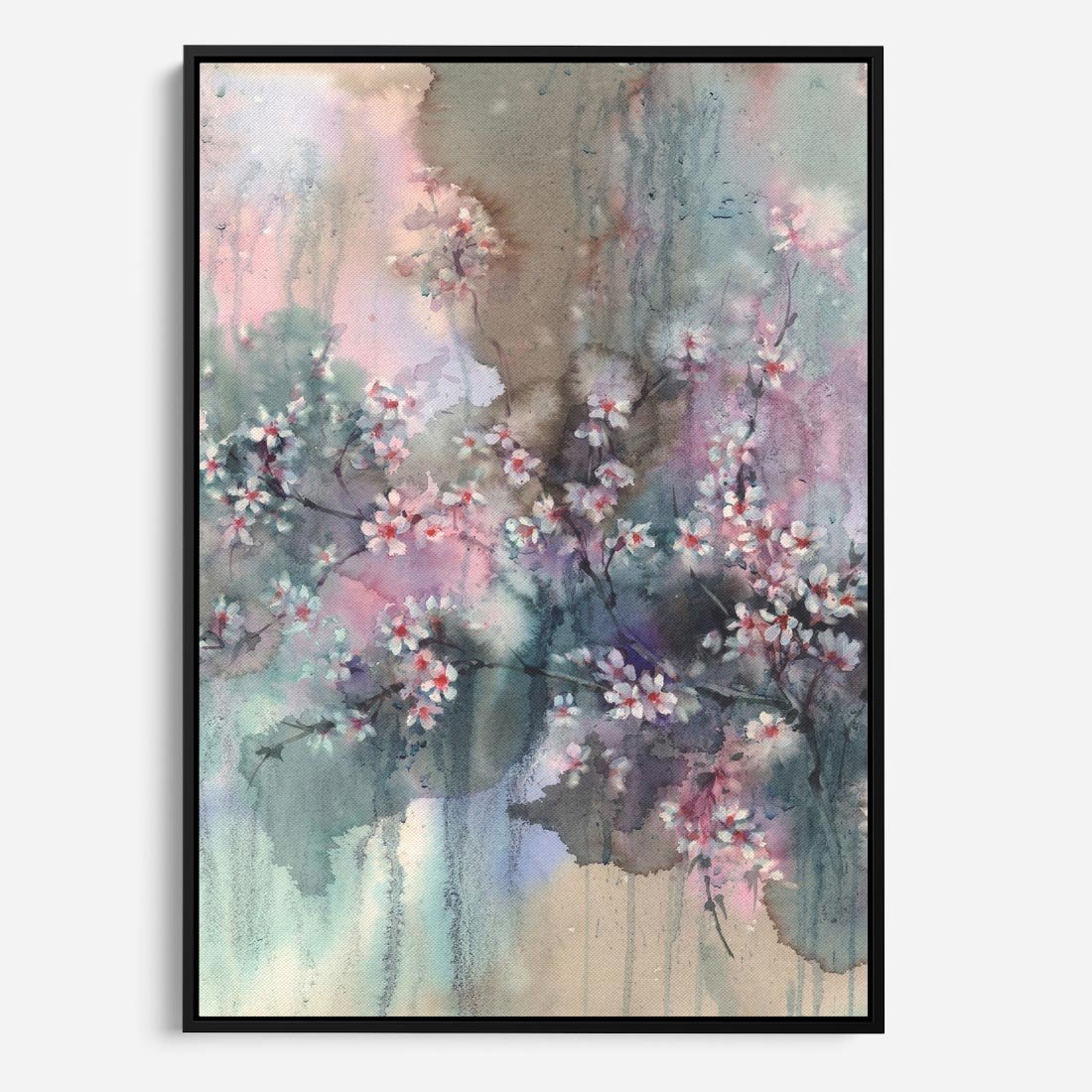Obraz w ramie 70x100 - Efemeryczne Kwitnienie Drzew - akwarela, rozmyte pastelowe tłó - rama czarna