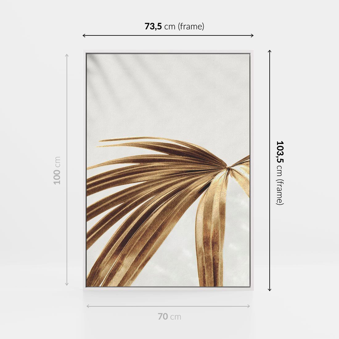 Obraz w ramie 70x100 - Egzotyczny Blask - złote, liście - rama biała