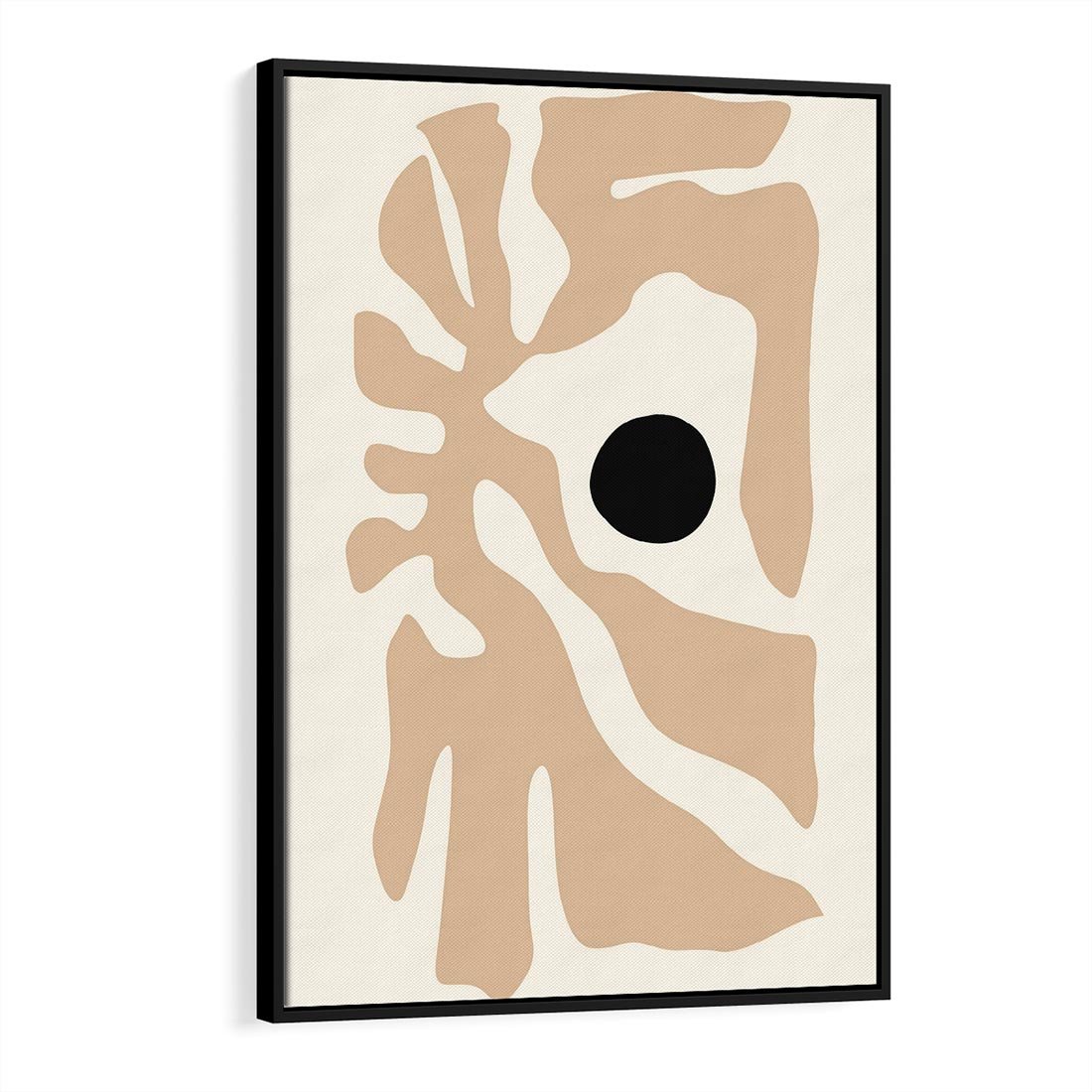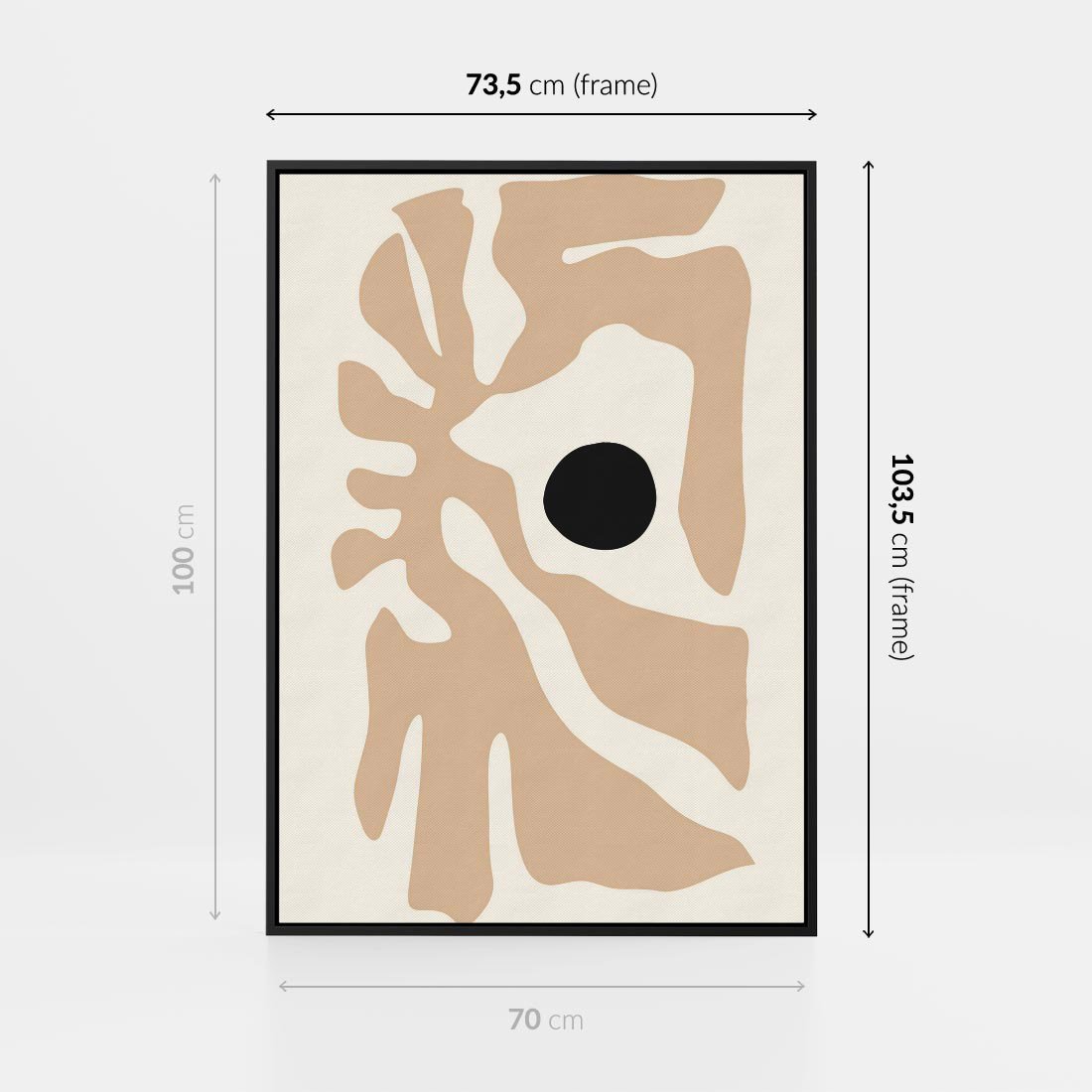 Obraz w ramie 70x100 - Eksploracja Abstrakcji - beżowa absrakcyjna kompozycja, czarny akcent - rama czarna