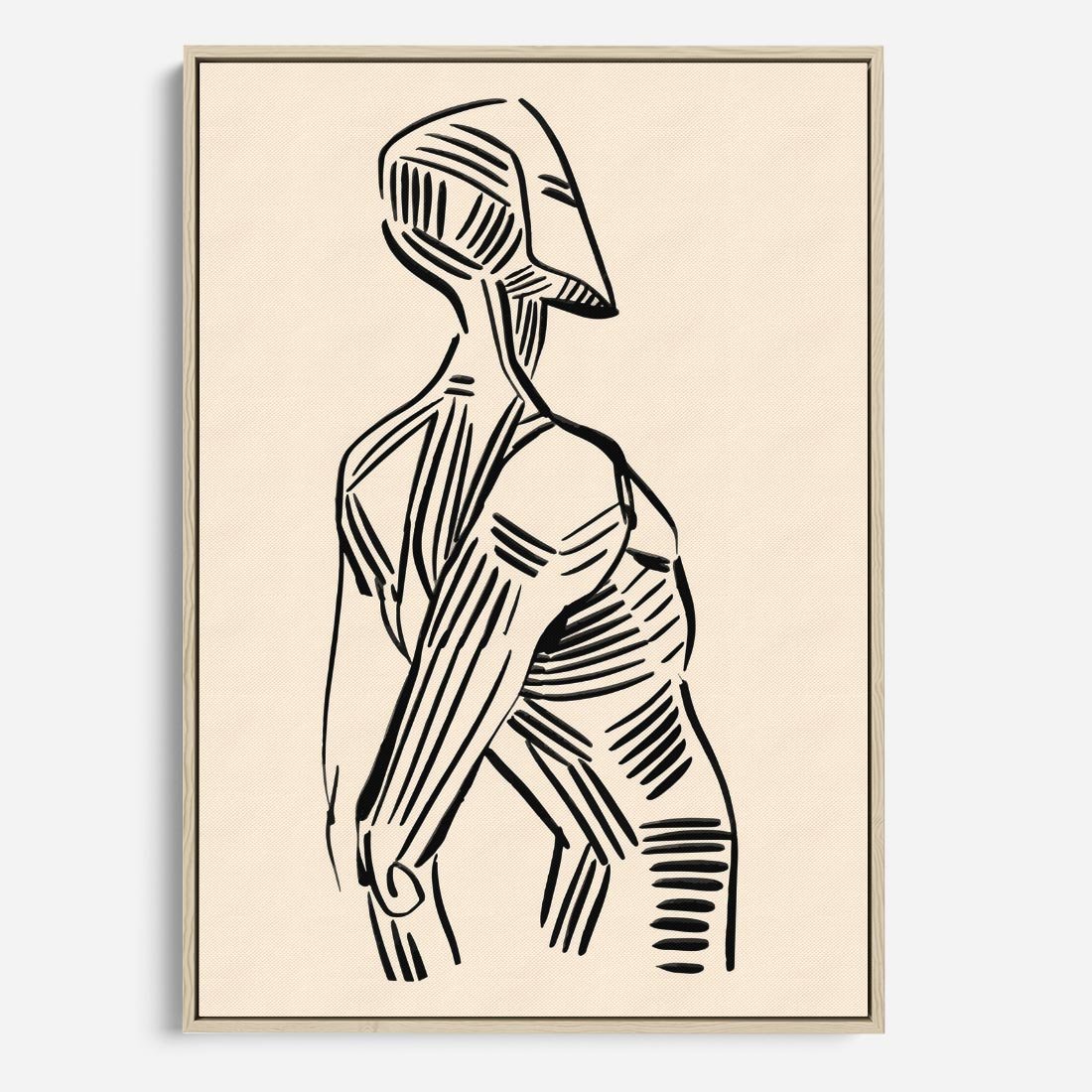 Ten czarno-biały szkic przedstawia abstrakcyjną postać w formie manekina. To artystyczne wyrażenie wprowadza do Twojej przestrzeni subtelność i estetykę, tworząc równocześnie interesujący akcent artystyczny.