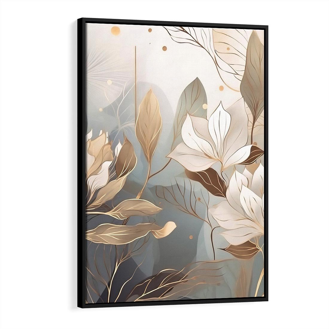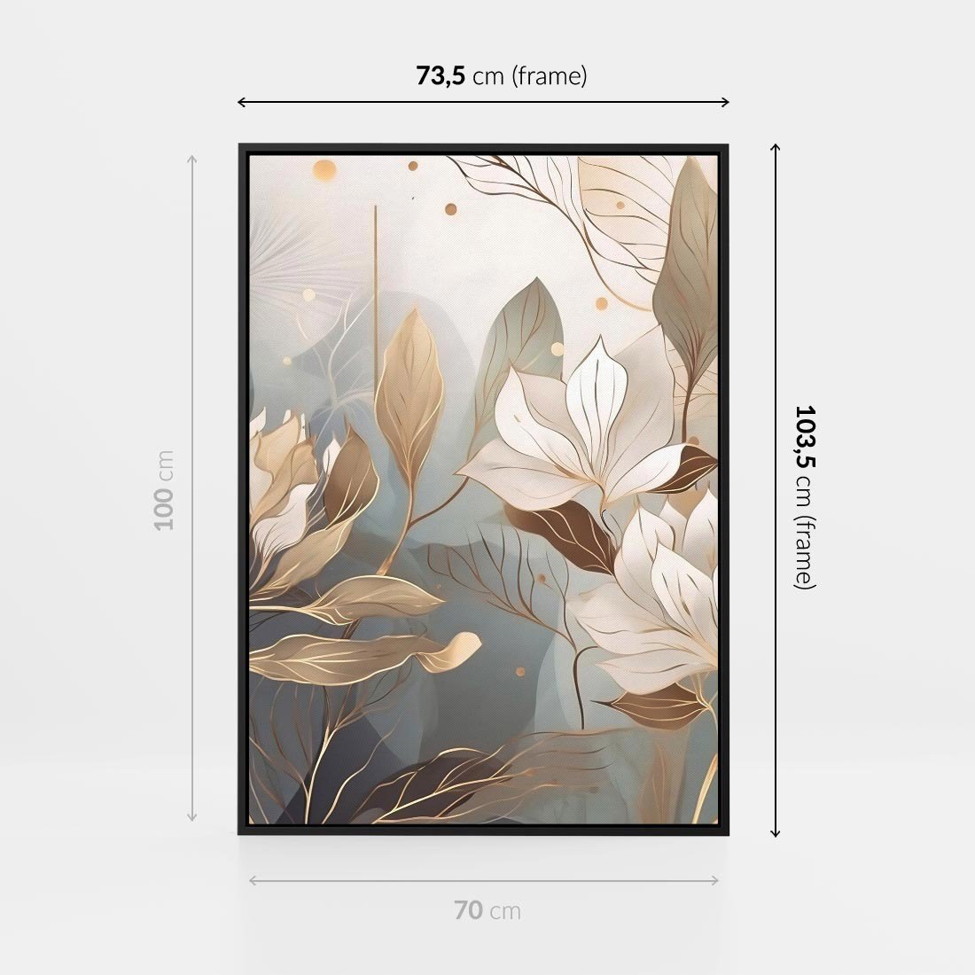 Ta nowoczesna grafika przedstawia złote kwiaty, które rozkwitają w blasku światła. Ich piękno i elegancja doskonale pasują do wnętrz glamour, dodając im wyjątkowego charakteru. To artystyczne dzieło sztuki wprowadza luksusowy akcent do Twojego wnętrza, zachwycając oryginalnością i złotym blaskiem.