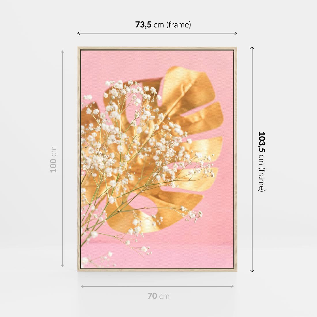 Obraz w ramie 70x100 - : Elegancja w Złocie - złote, liście - rama drewno
