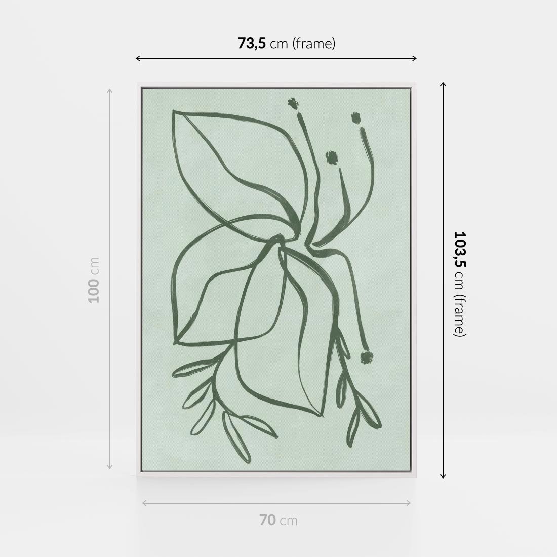 Ten nowoczesny plakat to interpretacja abstrakcyjnych, delikatnych zielonych linii, przypominających gałęzie kwiatów. To subtelne połączenie kształtów wprowadza do Twojej przestrzeni nowoczesność i naturę, tworząc jednocześnie interesujący akcent artystyczny.