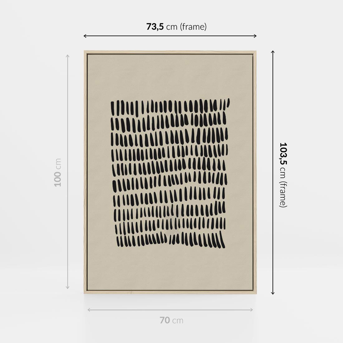 Obraz w ramie 70x100 - Energetyczne Pulsacje Nowości - boho plakat, czarne kropki kreski - rama drewno
