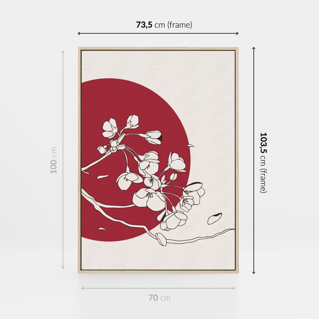 Obraz w ramie 70x100 - Esencja Zen - kwiatnąca wiśnia, orientalna grafika - rama drewno