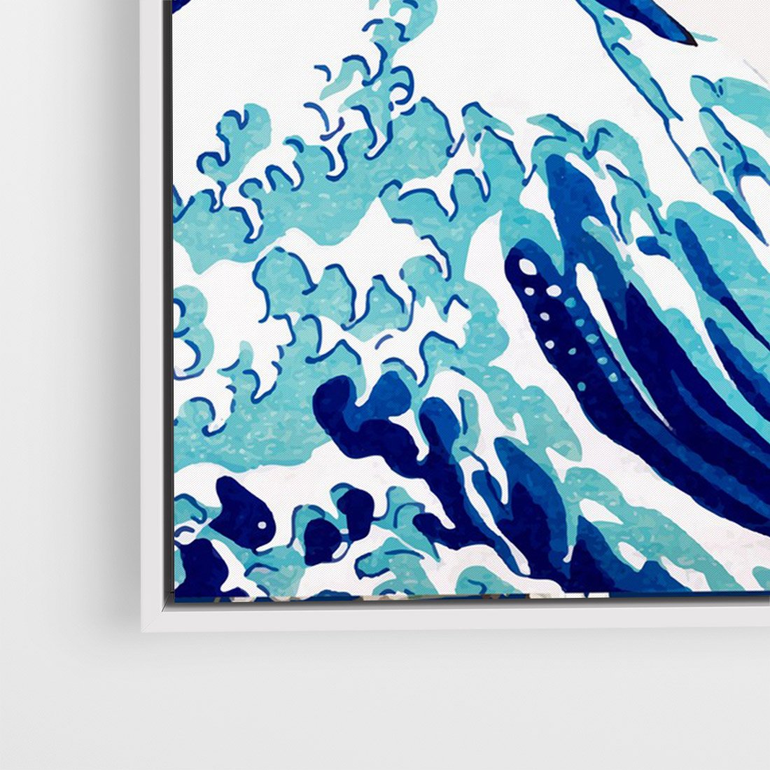 Obraz w ramie 70x100 - Fala Japandi - wielka fala w Kaganawie, obraz Hokusai - rama biała