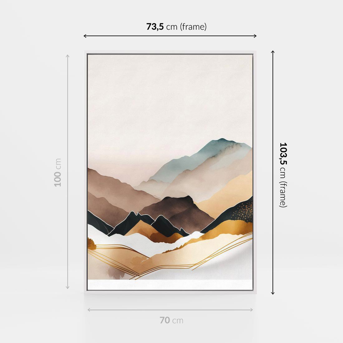 Obraz w ramie 70x100 - Góry Tonące w Pastelach - złote pastelowe góry, akwarela - rama biała