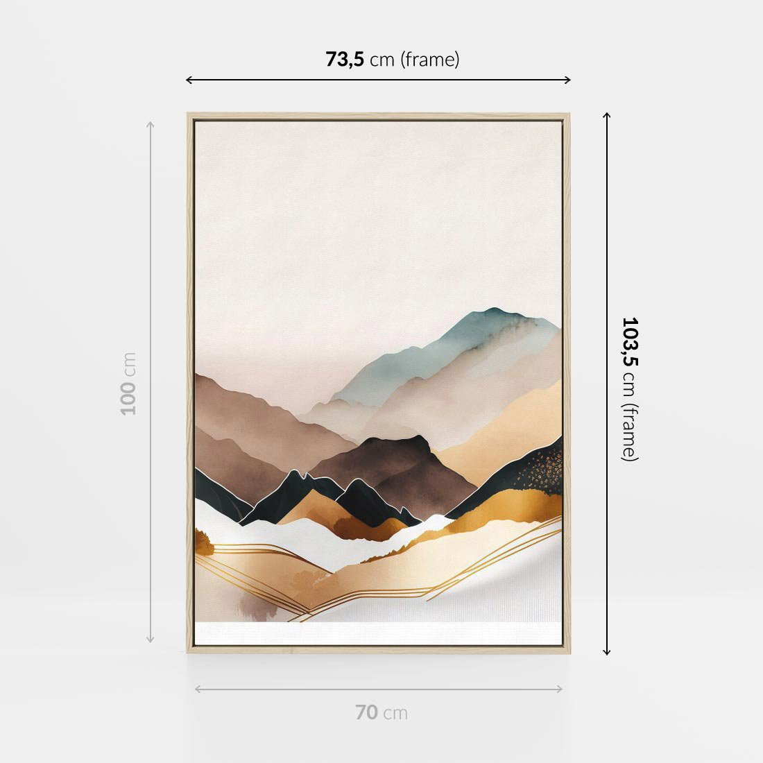 Obraz w ramie 70x100 - Góry Tonące w Pastelach - złote pastelowe góry, akwarela - rama drewno