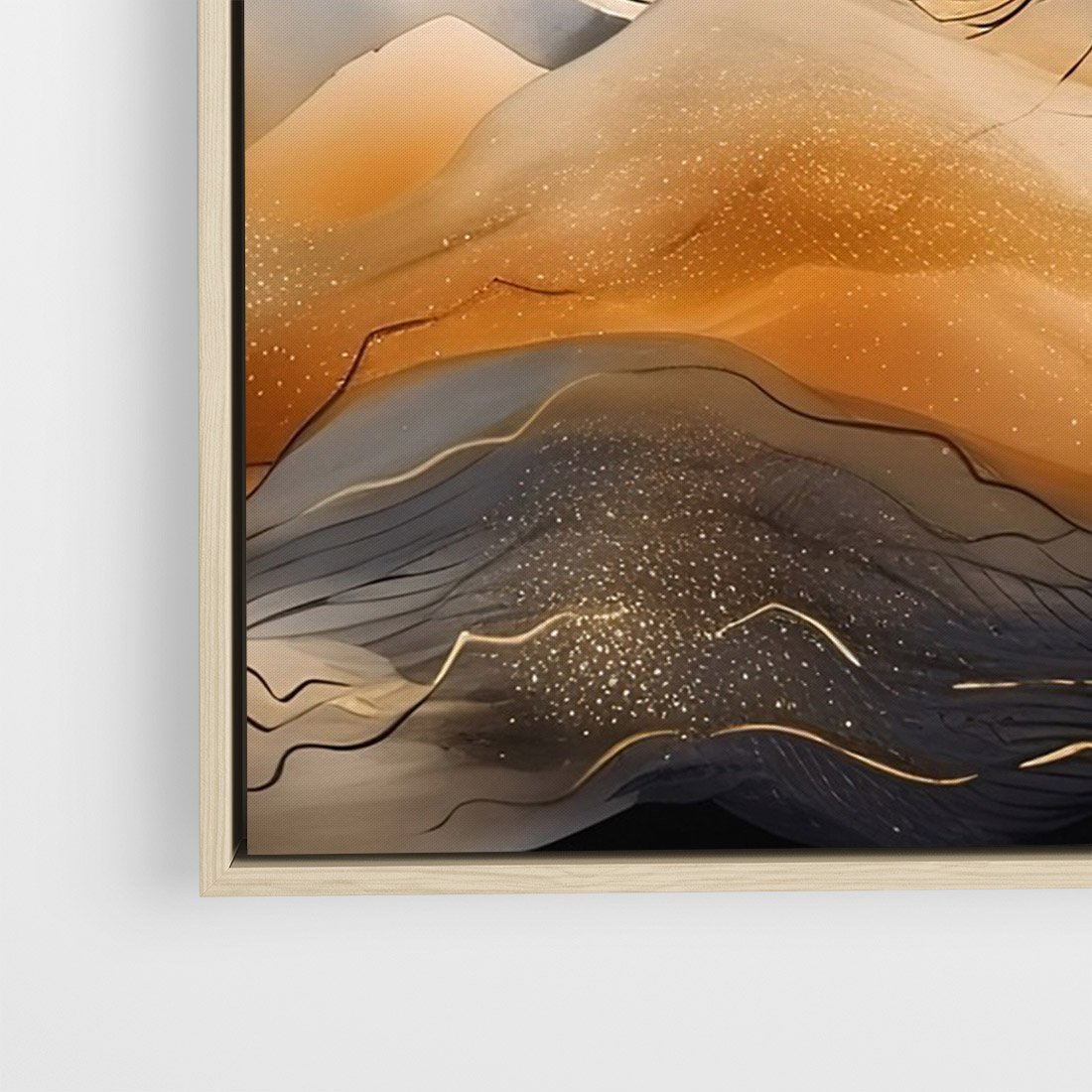 Ta nowoczesna grafika ukazuje urok zachodu słońca nad czarnymi górami. Odcienie pastelowego różu i złota tworzą magiczną atmosferę, przenosząc widza w malowniczy krajobraz. To artystyczne dzieło oddaje piękno natury i wprowadzi harmonię oraz ciepło do każdego wnętrza.