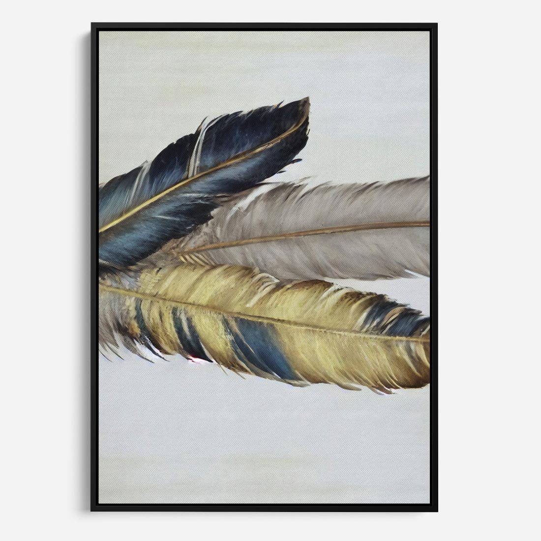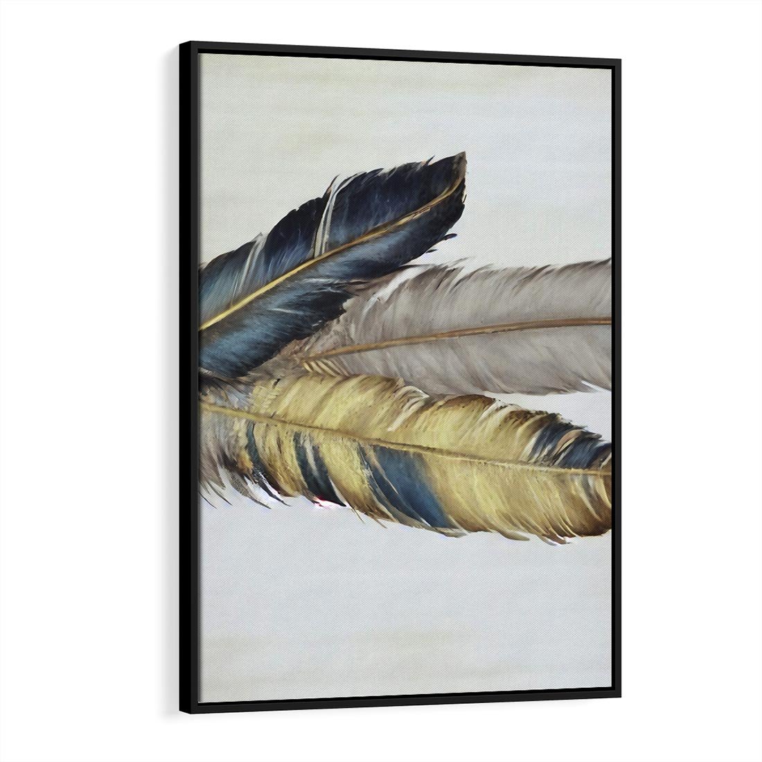 Obraz w ramie 70x100 - Granatowo-Złote Pióra - sztuka, granatowe i złote pióra - rama czarna