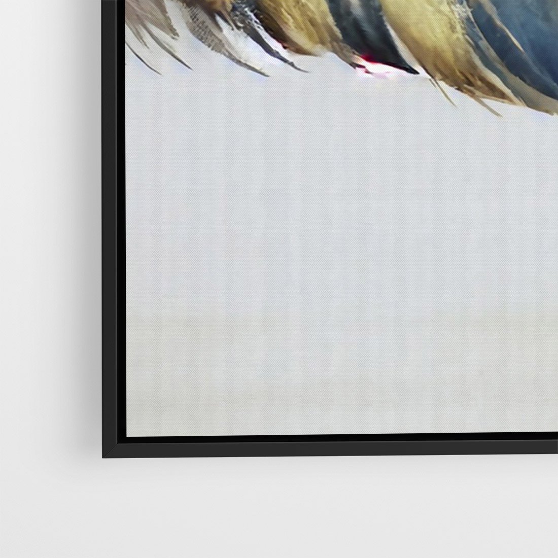 Ten unikatowy obraz przedstawia granatowe i złote pióra w stylu boho. Sztuka ta emanuje swobodą i egzotycznym wdziękiem, przyciągając wzrok swoją oryginalnością. Wyraziste kolory i piękno piór wkomponowane w dzieło sztuki dodają przestrzeni wyjątkowego charakteru i artystycznego stylu, idealnego dla miłośników boho.