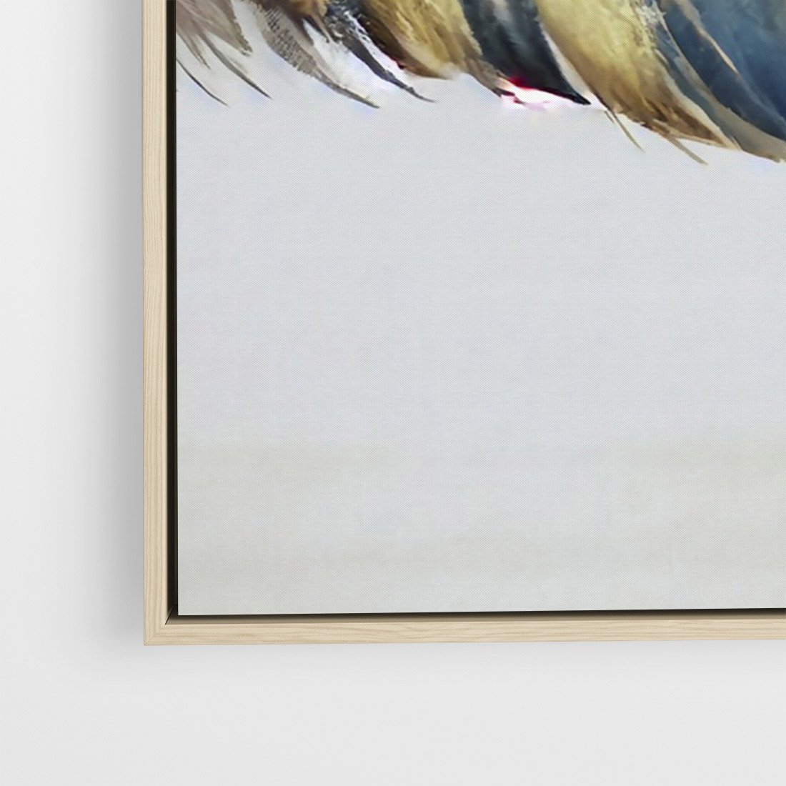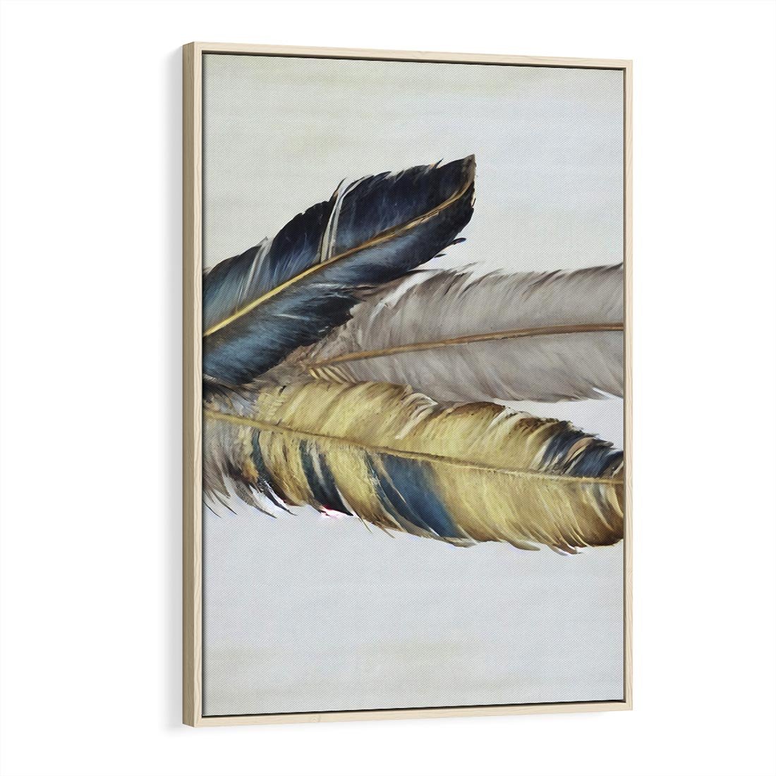 Ten unikatowy obraz przedstawia granatowe i złote pióra w stylu boho. Sztuka ta emanuje swobodą i egzotycznym wdziękiem, przyciągając wzrok swoją oryginalnością. Wyraziste kolory i piękno piór wkomponowane w dzieło sztuki dodają przestrzeni wyjątkowego charakteru i artystycznego stylu, idealnego dla miłośników boho.