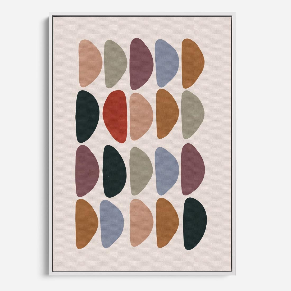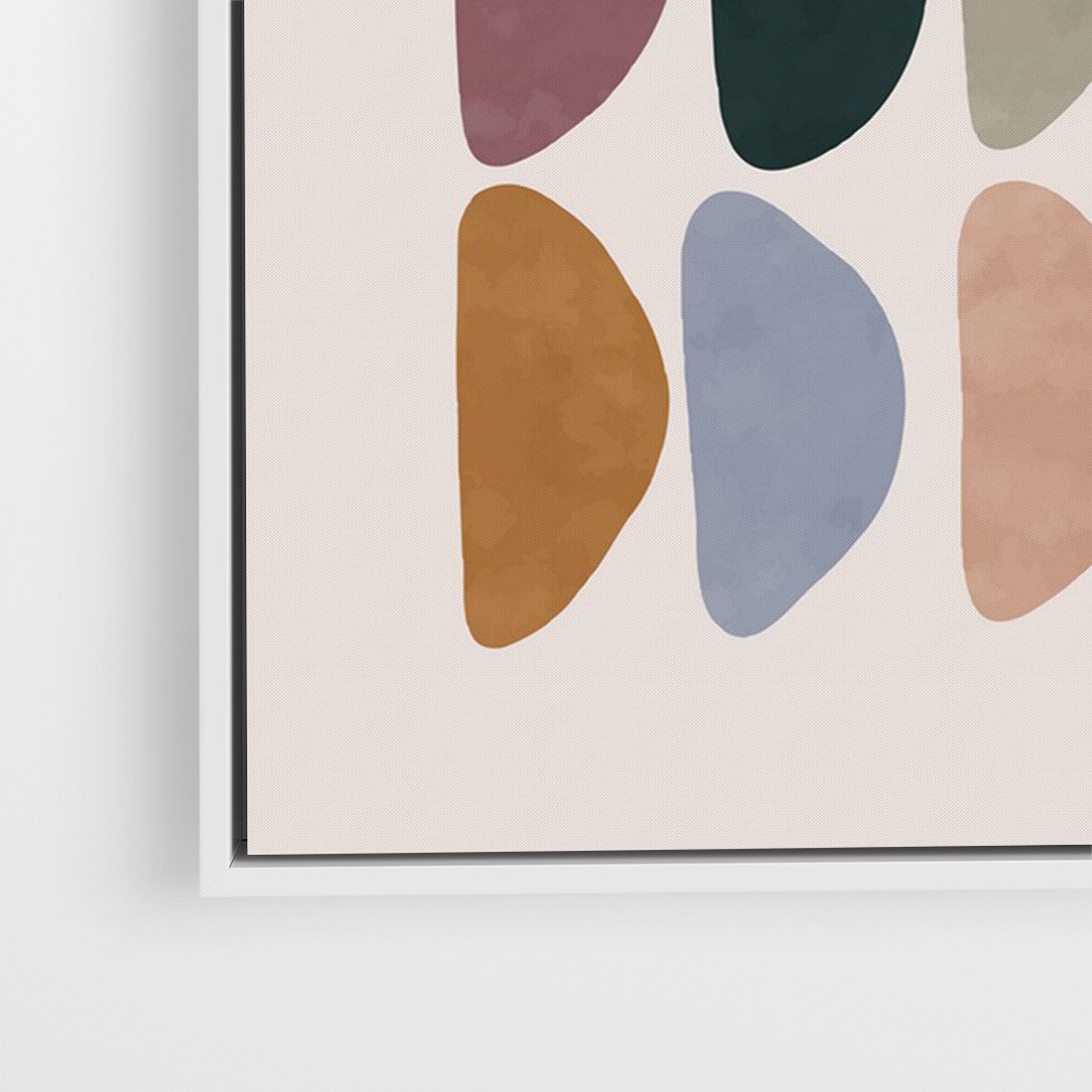 Ten abstrakcyjny obraz prezentuje geometryczną kompozycję w stylu boho. Kształty i linie tworzą harmonijną równowagę, a delikatne odcienie kolorów dodają mu charakterystycznego uroku. To idealny plakat, który wprowadzi subtelność i wyjątkowość do każdego wnętrza.