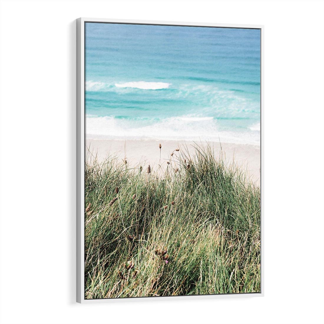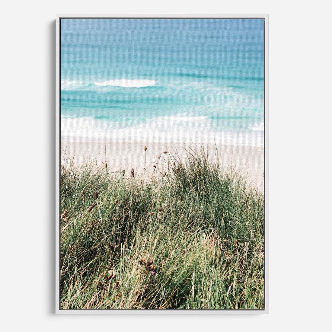 Obraz w ramie 70x100 - Harmonia Natury - widok z wydm, wydmy porośnięte trawami - rama biała