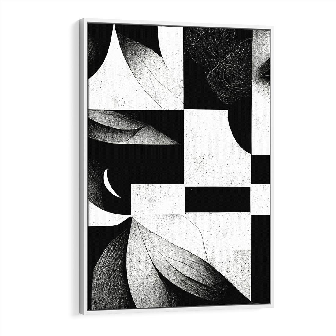 Obraz w ramie 70x100 - Harmonia świateł i cieni - abstrakcja czarno biała, geometria - rama biała