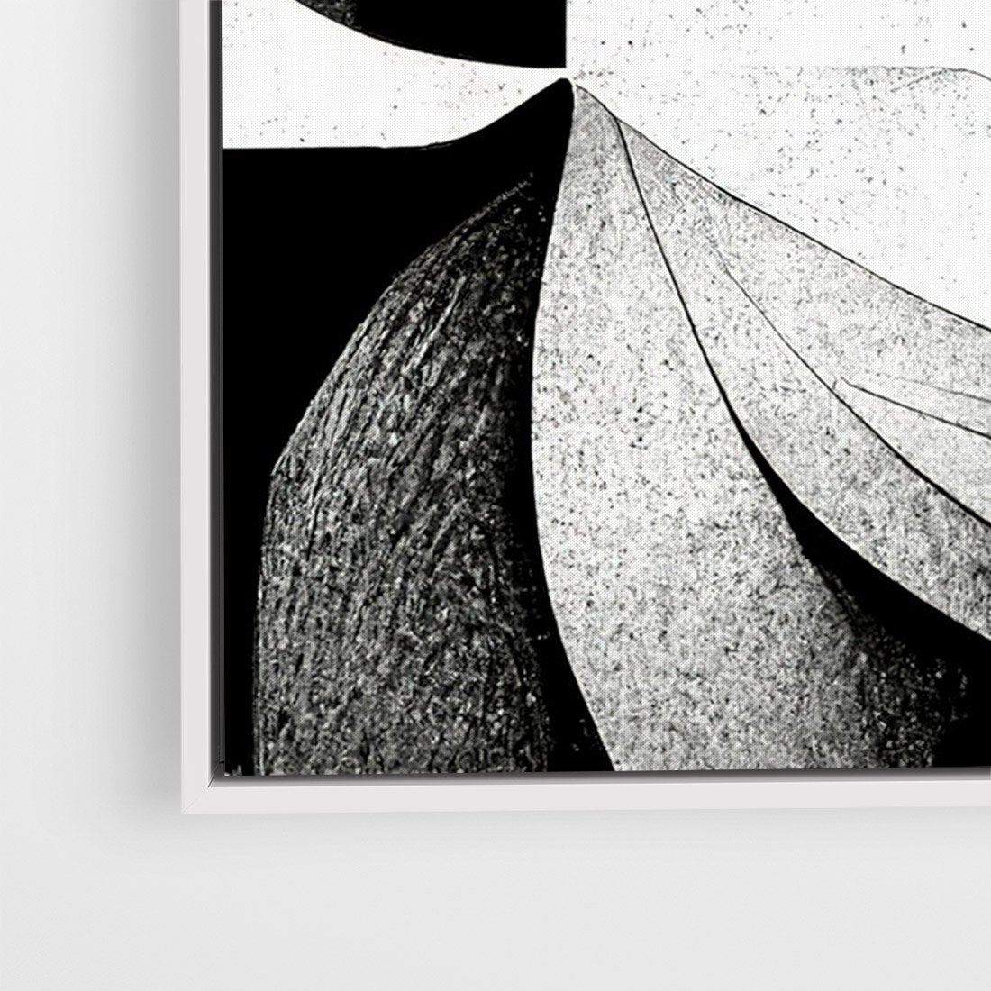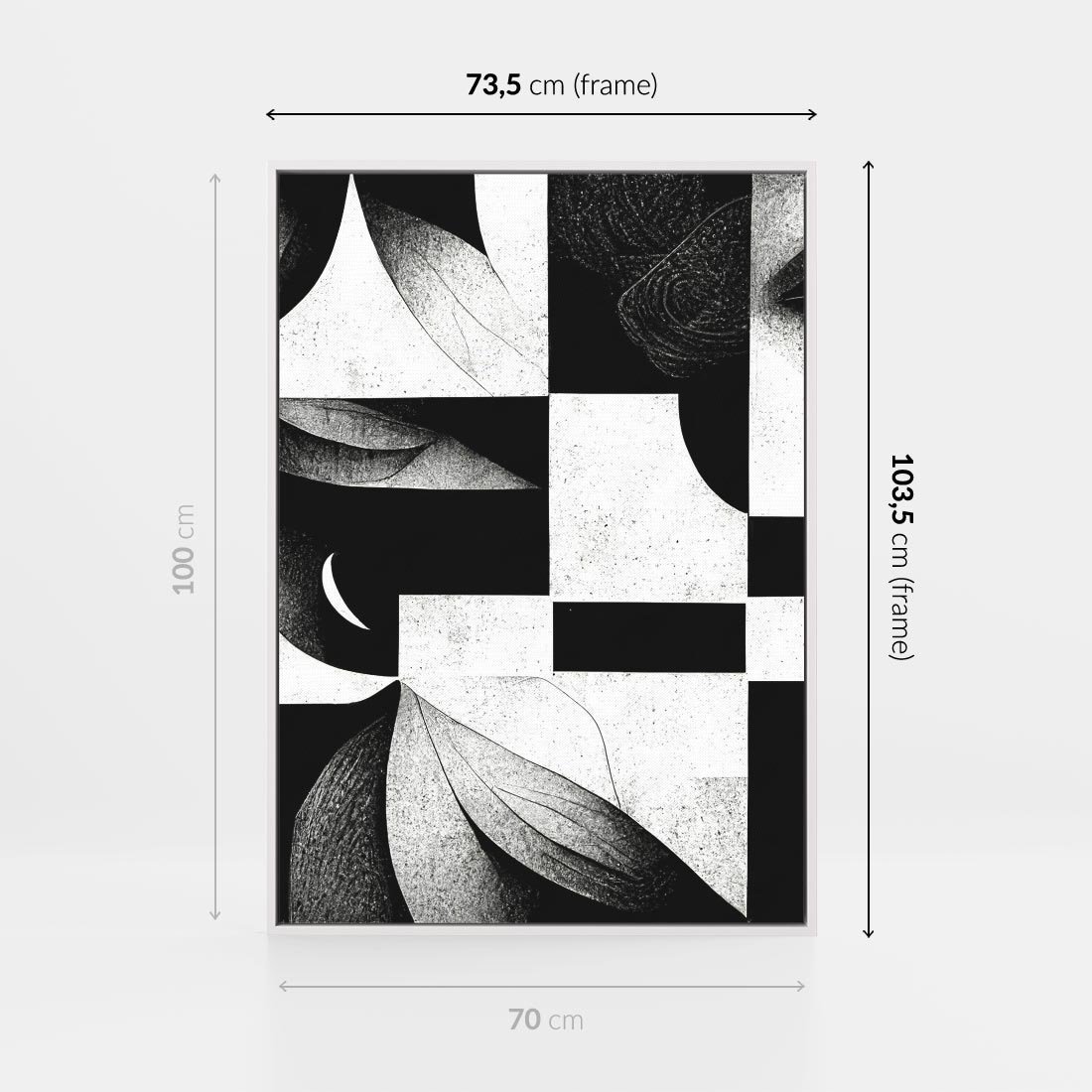 Wzorowana na modernistycznym stylu, abstrakcyjna kompozycja w czerni i bieli przyciąga uwagę. Geometria i elementy roślin tworzą harmonię kontrastów, a ukryte oko dodaje tajemniczości. To dzieło sztuki o loftowym charakterze, które wprowadzi eklektyczny powiew do Twojego wnętrza.
