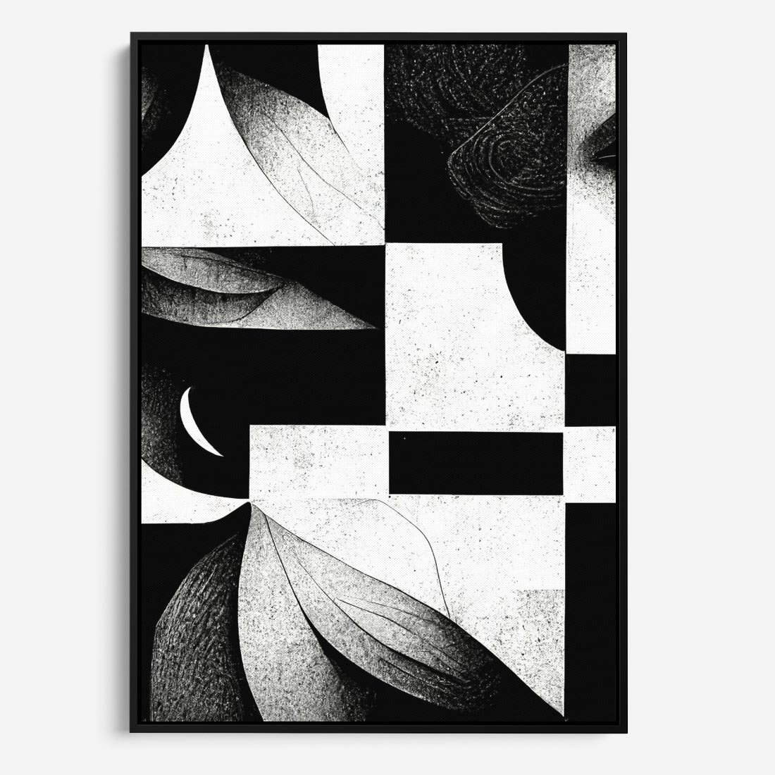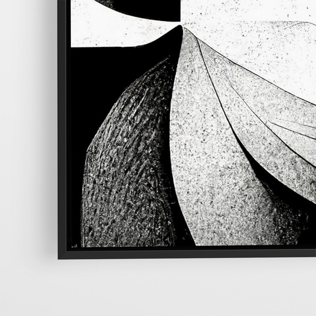 Wzorowana na modernistycznym stylu, abstrakcyjna kompozycja w czerni i bieli przyciąga uwagę. Geometria i elementy roślin tworzą harmonię kontrastów, a ukryte oko dodaje tajemniczości. To dzieło sztuki o loftowym charakterze, które wprowadzi eklektyczny powiew do Twojego wnętrza.