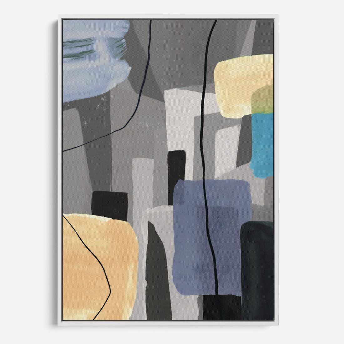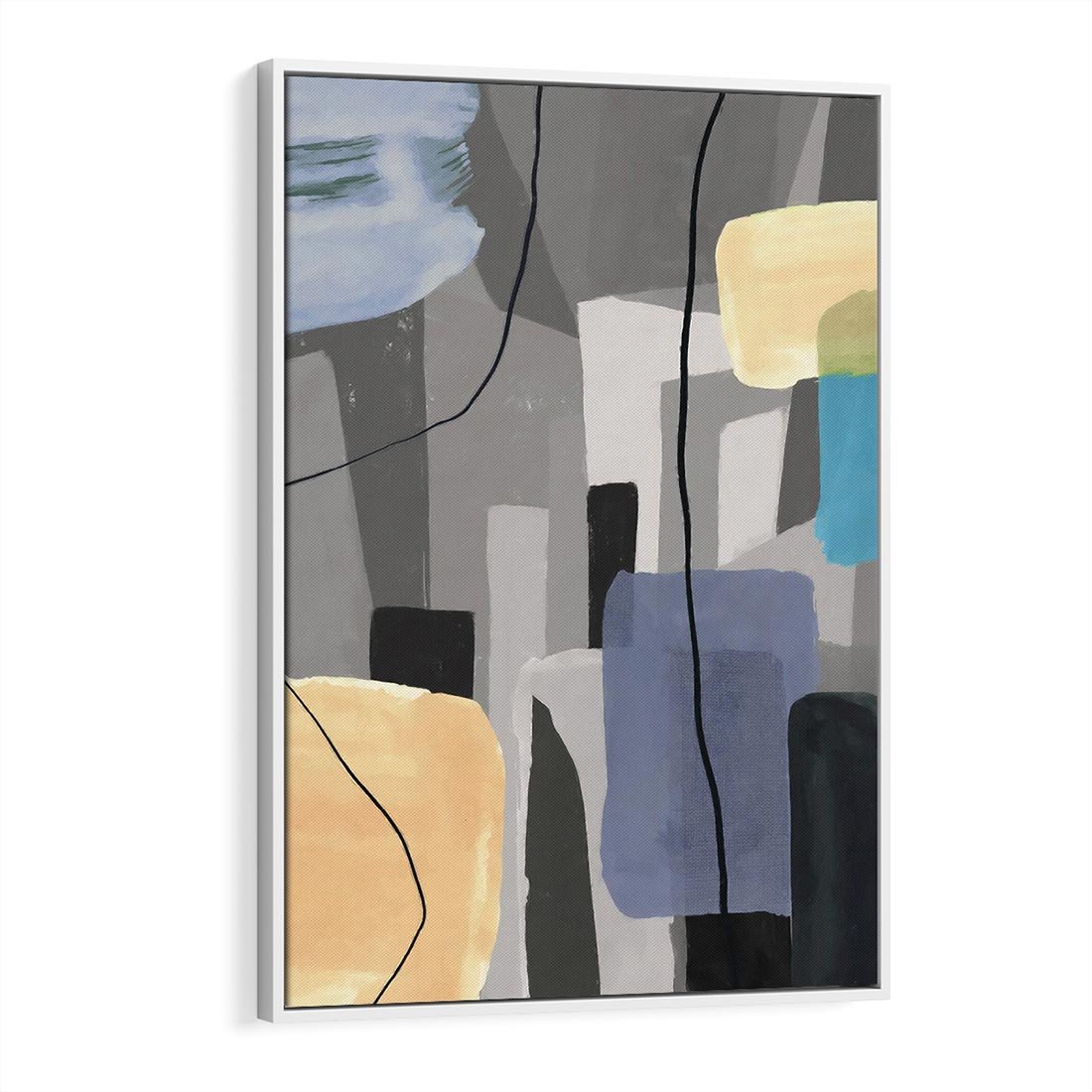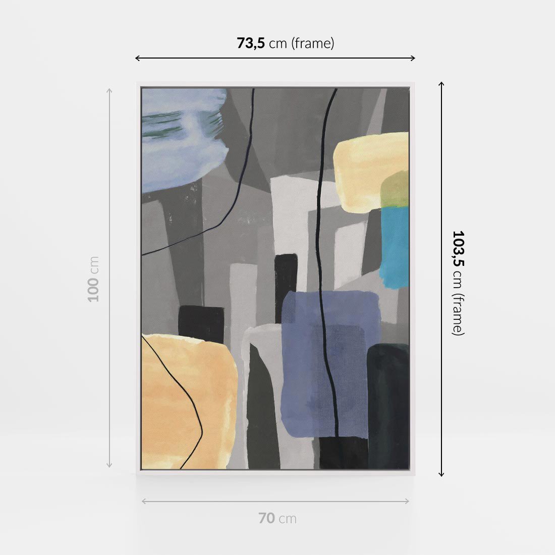 Obraz w ramie 70x100 - Harmonia w chaosie serca - abstrakcja na szarym tle, kolorowe plamy koloru - rama biała