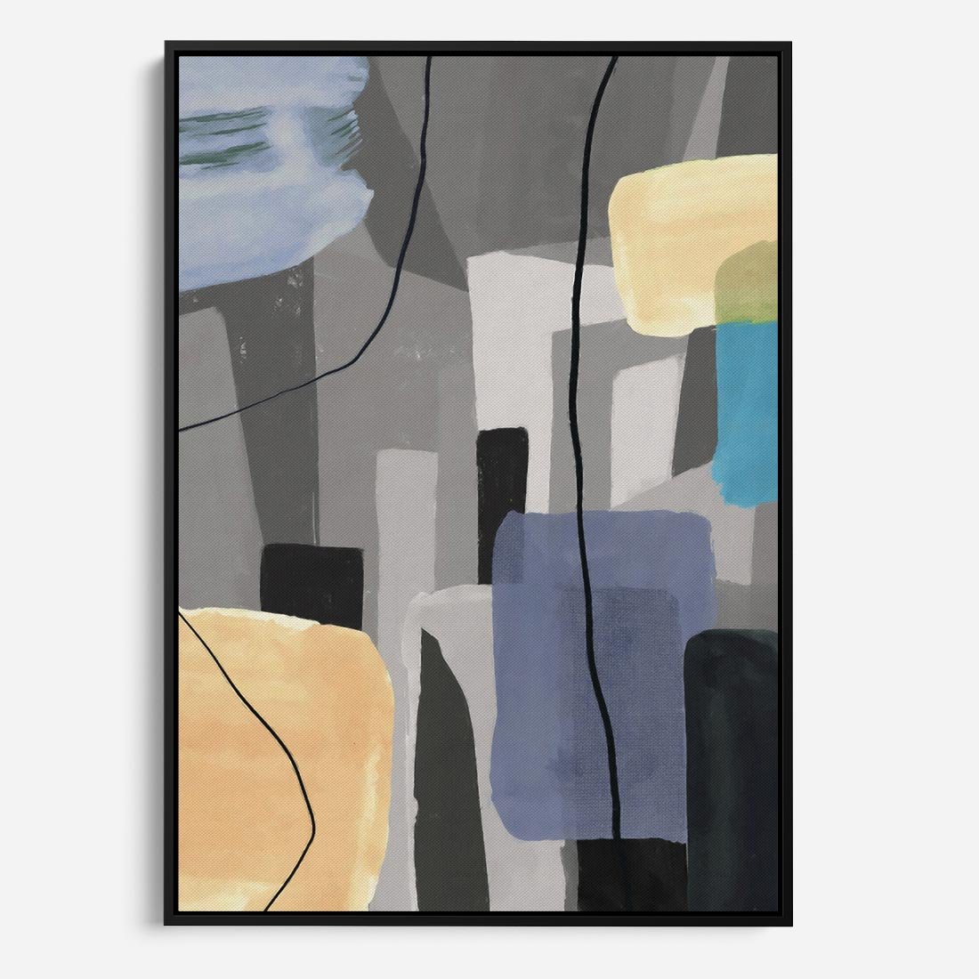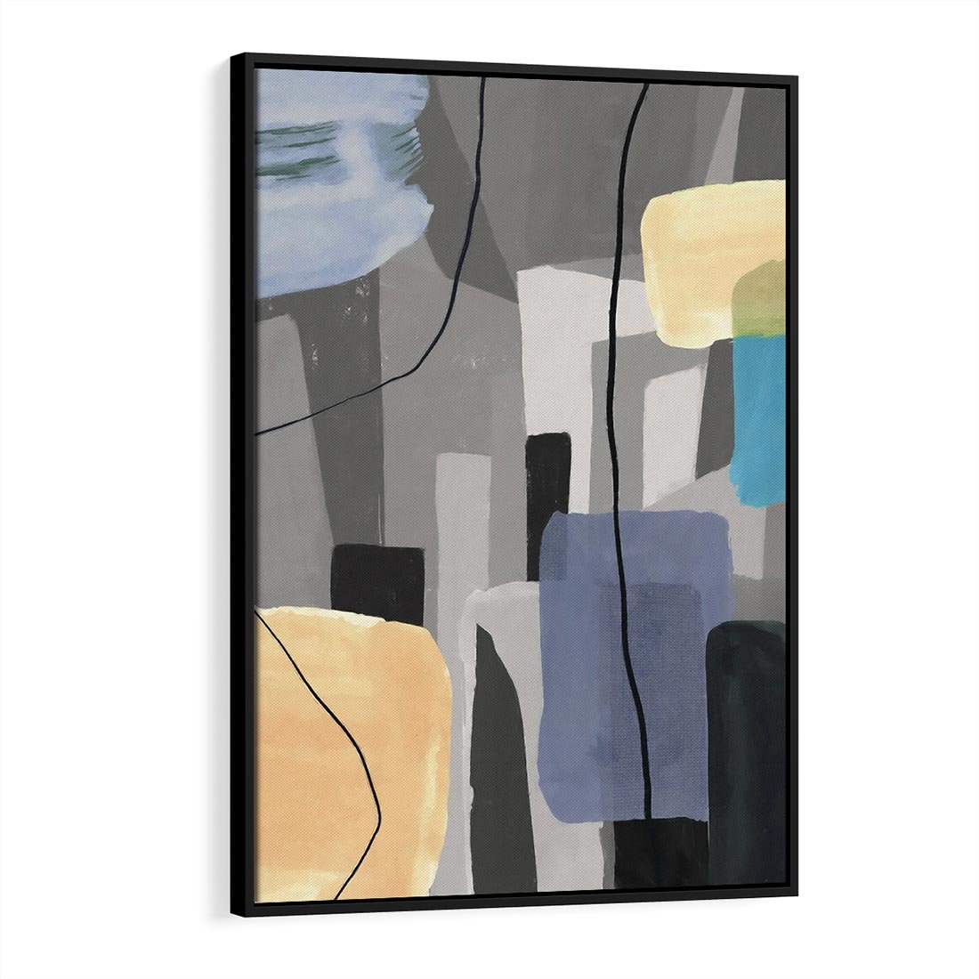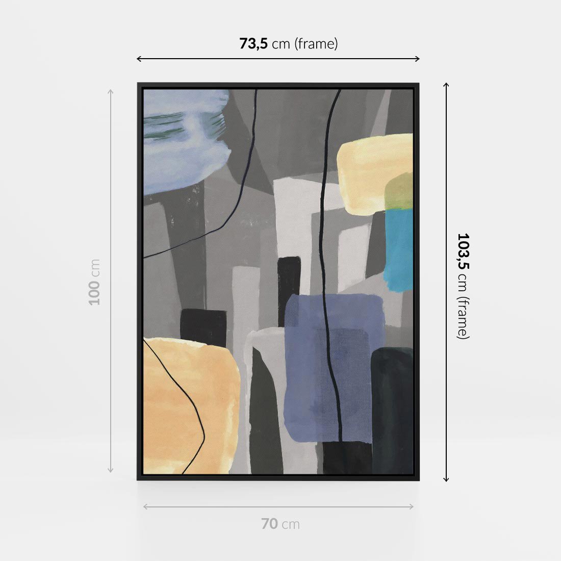 Obraz w ramie 70x100 - Harmonia w chaosie serca - abstrakcja na szarym tle, kolorowe plamy koloru - rama czarna