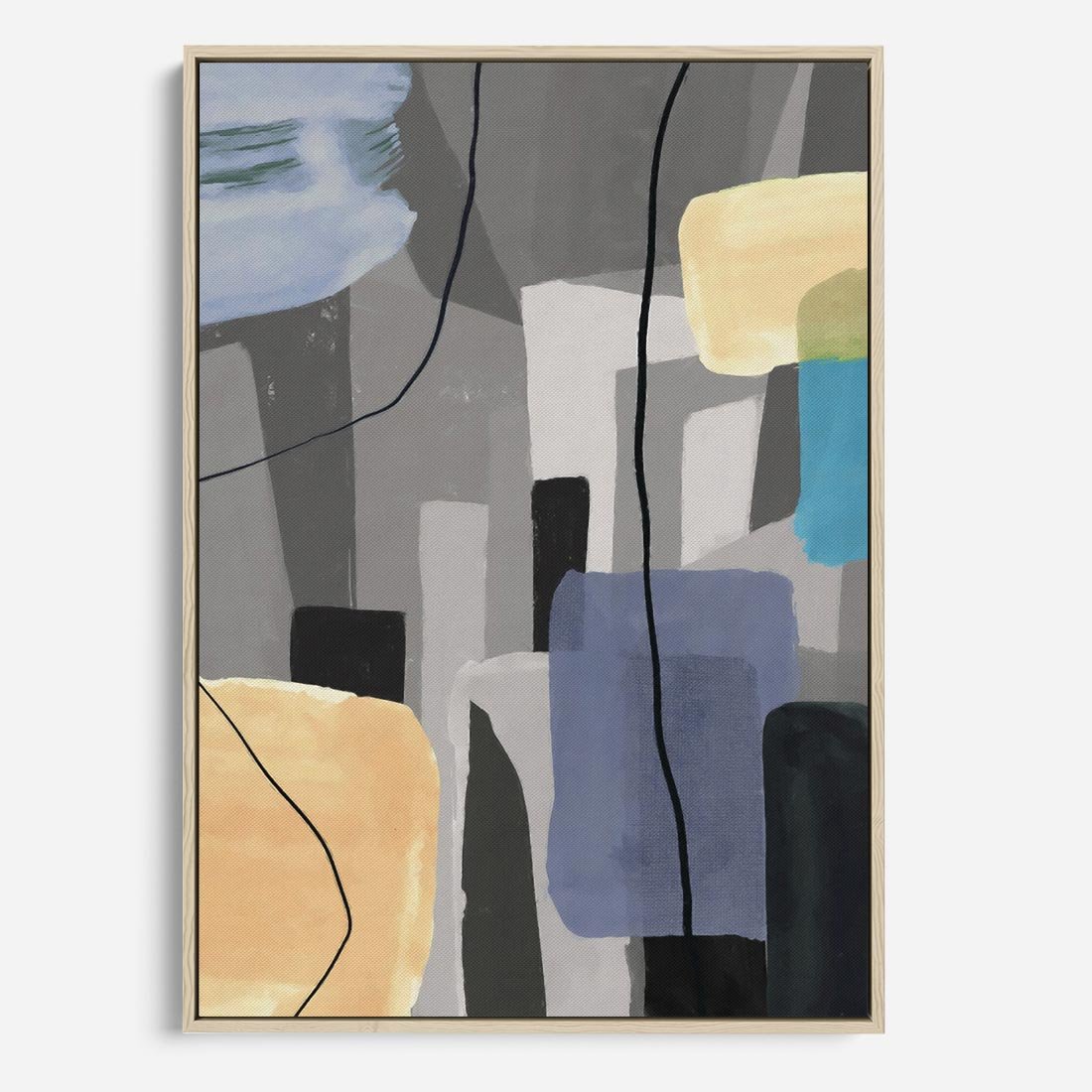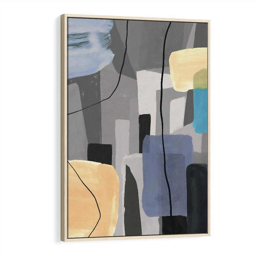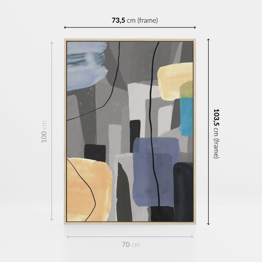 Obraz w ramie 70x100 - Harmonia w chaosie serca - abstrakcja na szarym tle, kolorowe plamy koloru - rama drewno