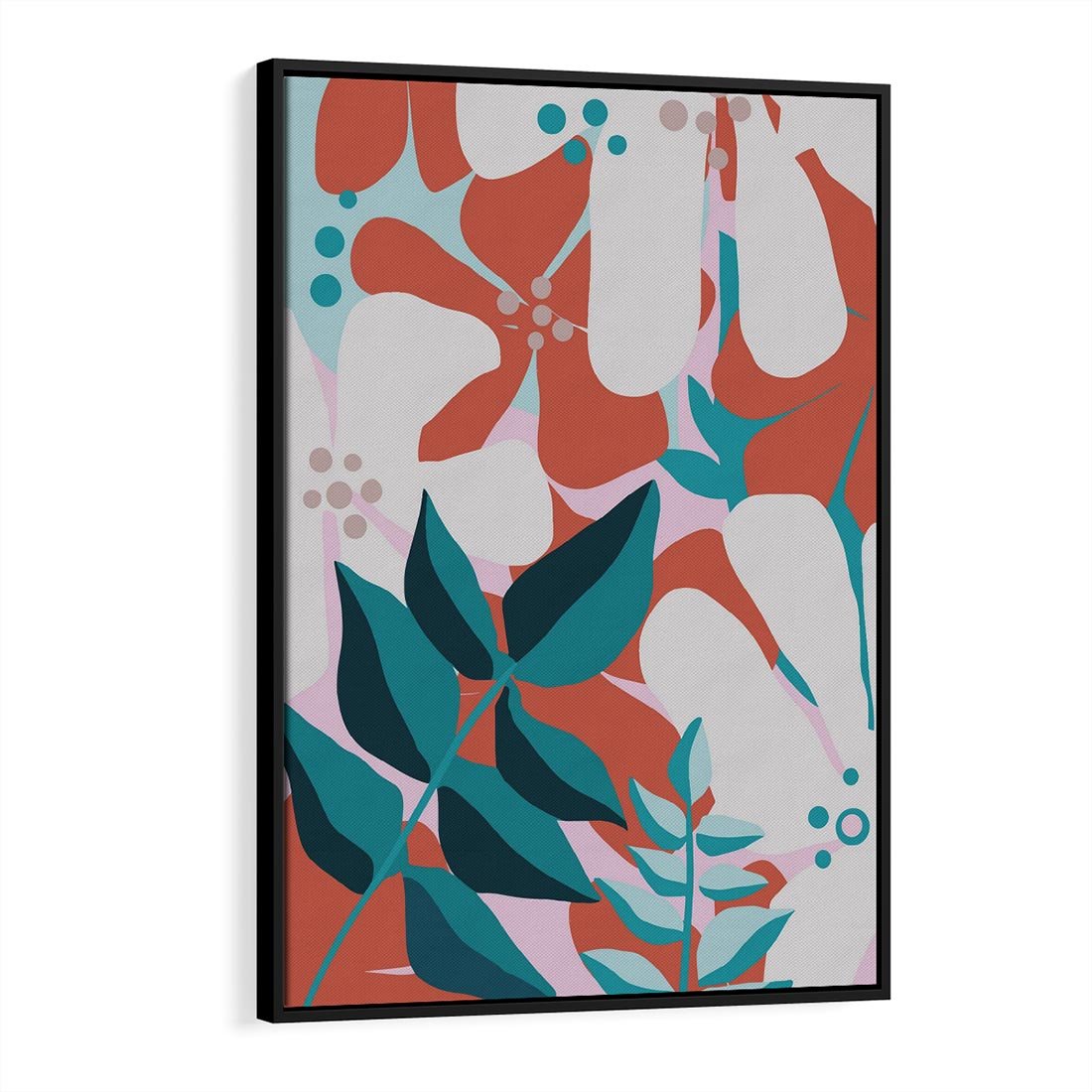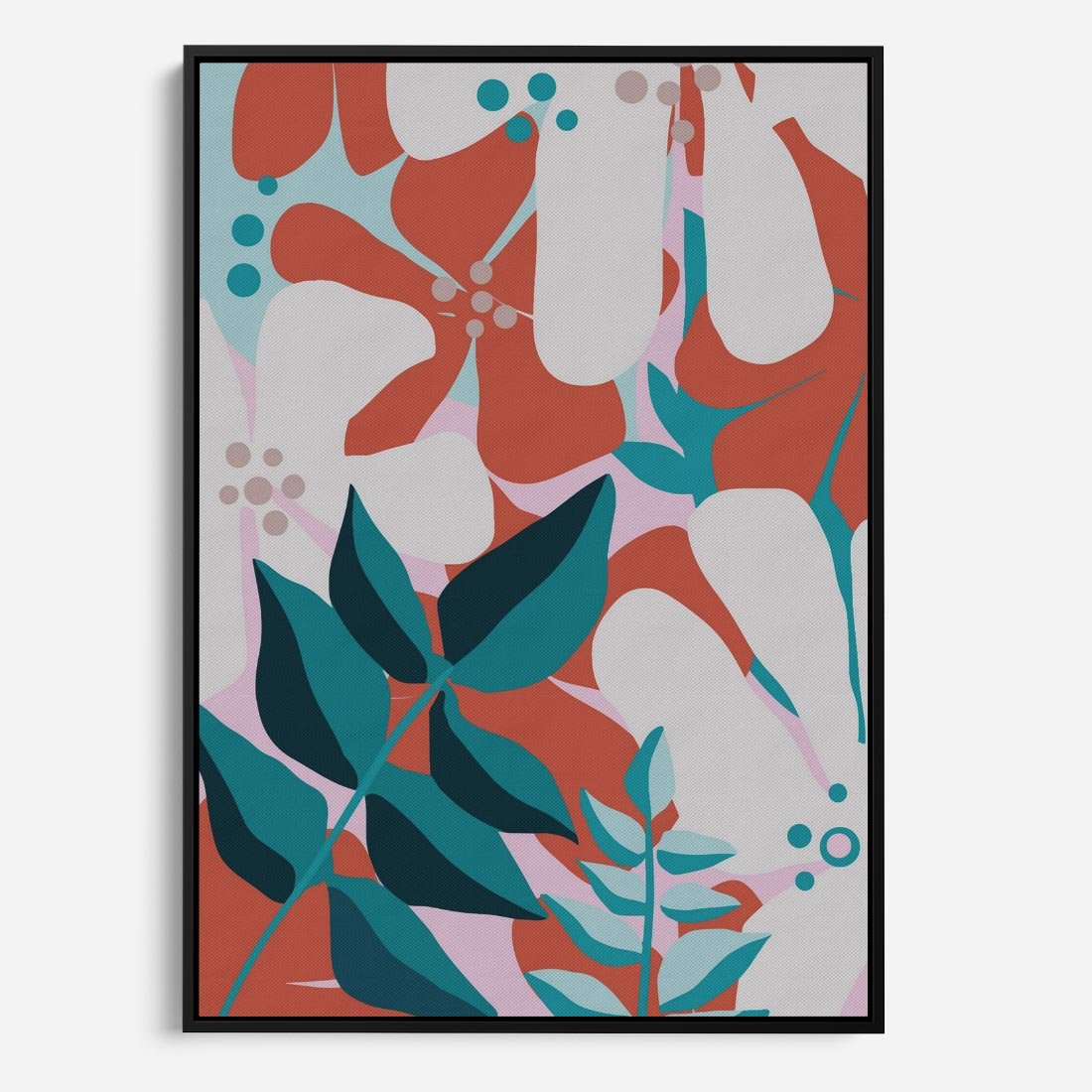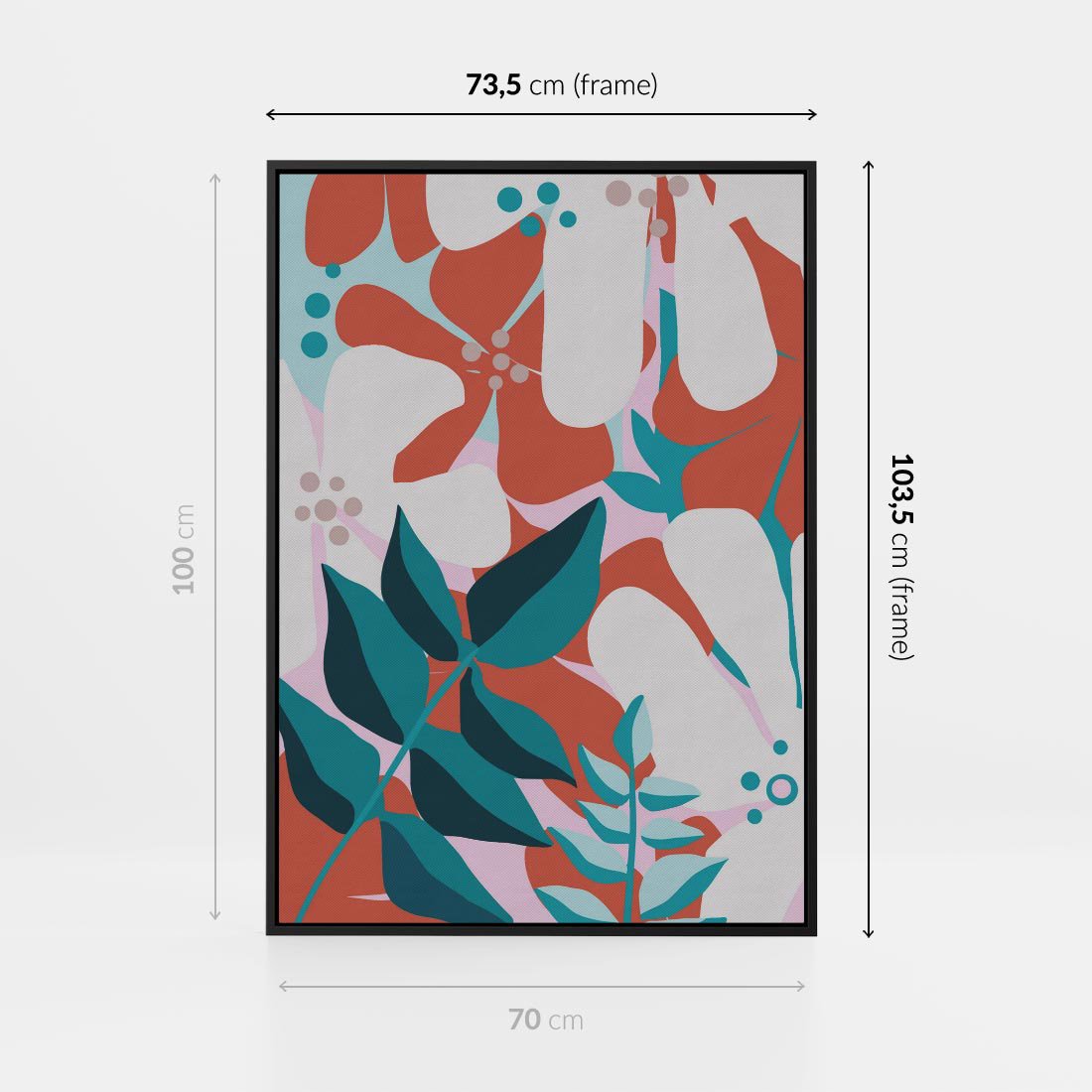 Obraz w ramie 70x100 - Harmonijne Formy - abstrakcyjna kompozycja kwiatowych form, kolor zgaszone - rama czarna