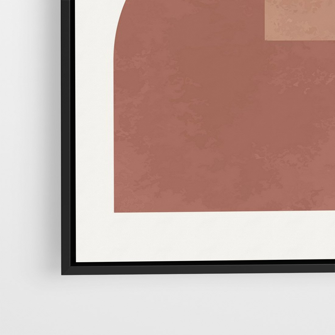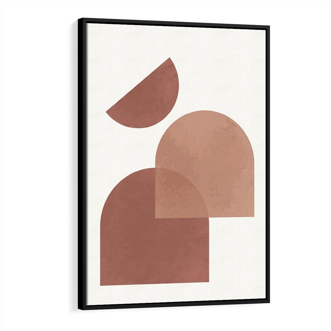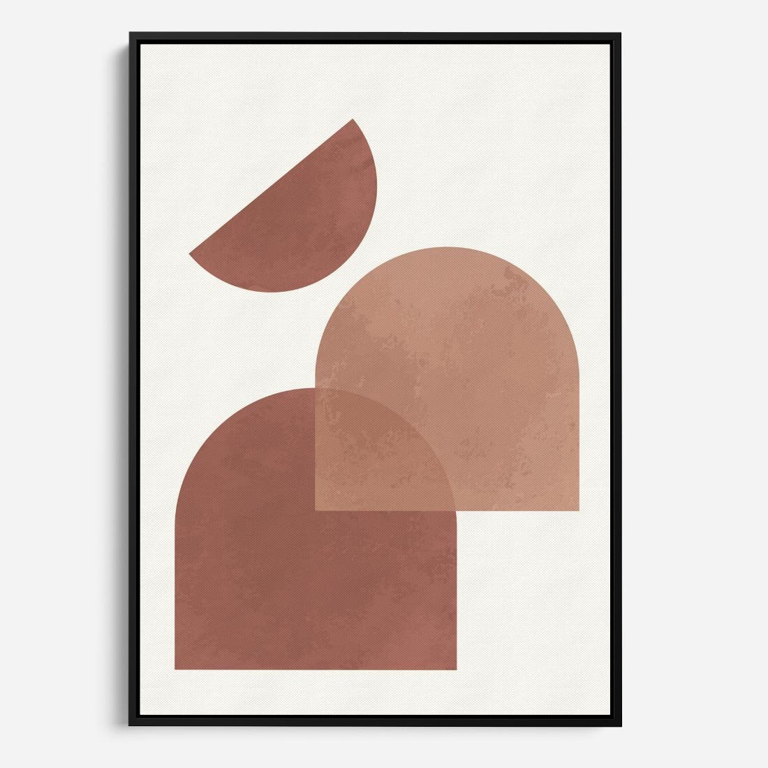 Ten abstrakcyjny obraz w minimalistycznym stylu łączy geometryczne kształty w odcieniach brązu i beżu, wprowadzając subtelny akcent do nowoczesnych wnętrz w duchu boho.