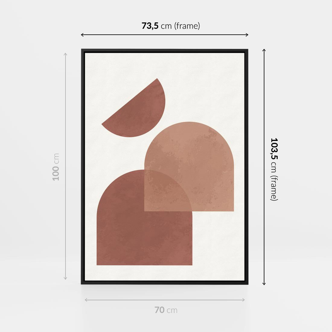 Obraz w ramie 70x100 - Harmonijne Widoki - abstrakcyjne geometryczne kształty, odcienie brązu i beżu - rama czarna