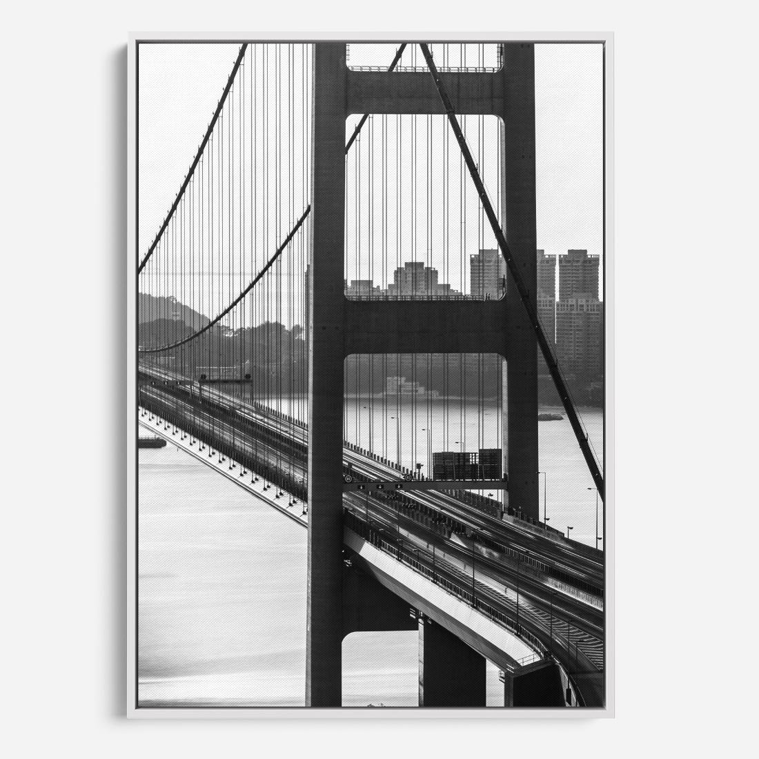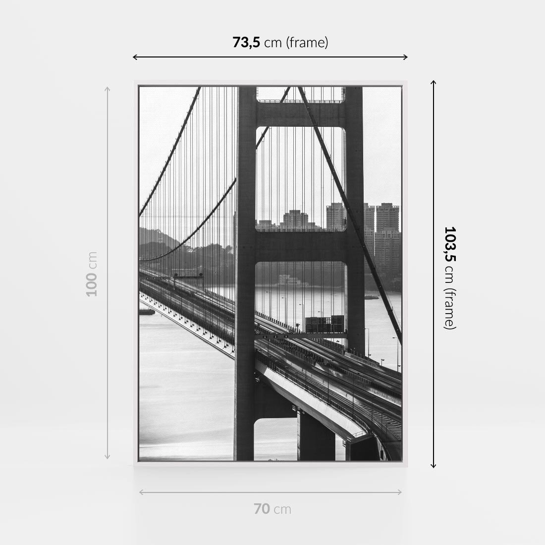 Obraz w ramie 70x100 - Ikona Miasta - most Nowy Jork, czarno biała fotografia - rama biała