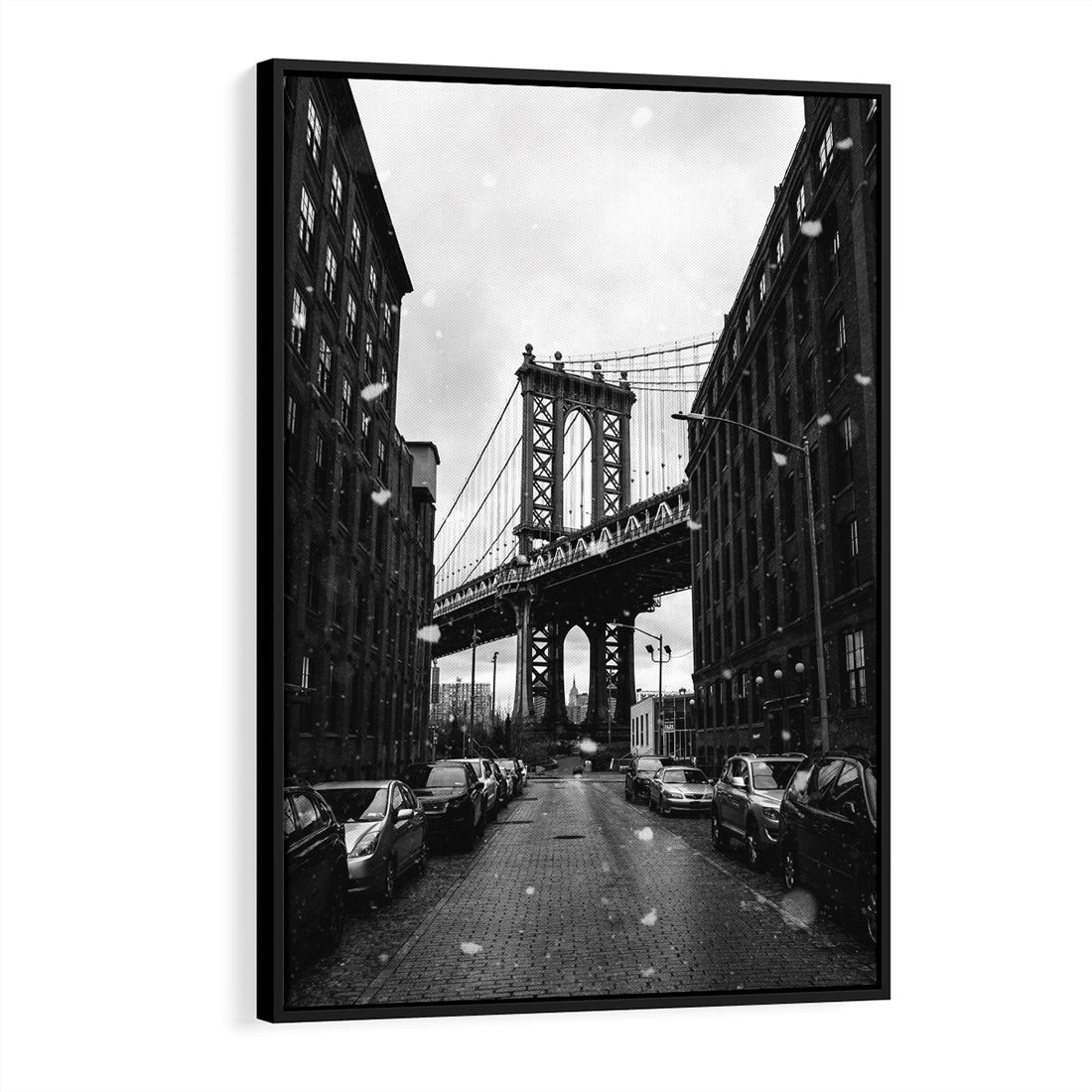 Obraz w ramie 70x100 - Ikona Miasta - Nowy Jork, most - rama czarna