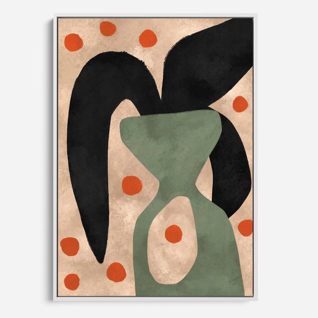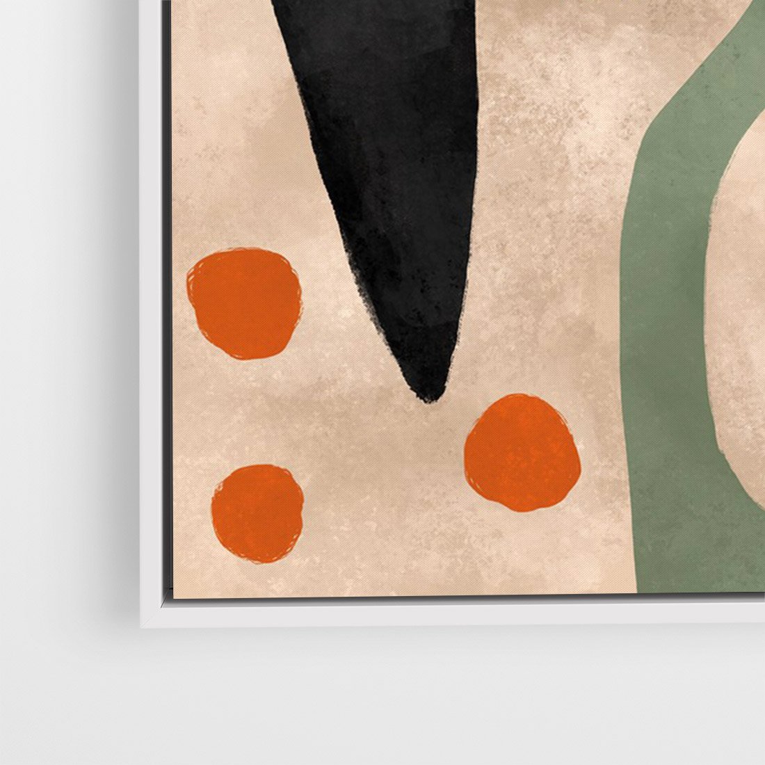 Ten abstrakcyjny obraz-plakat prezentuje dziwne i intrygujące kształty na delikatnym beżowym tle, wprowadzając do wnętrza charakterystyczny boho klimat.