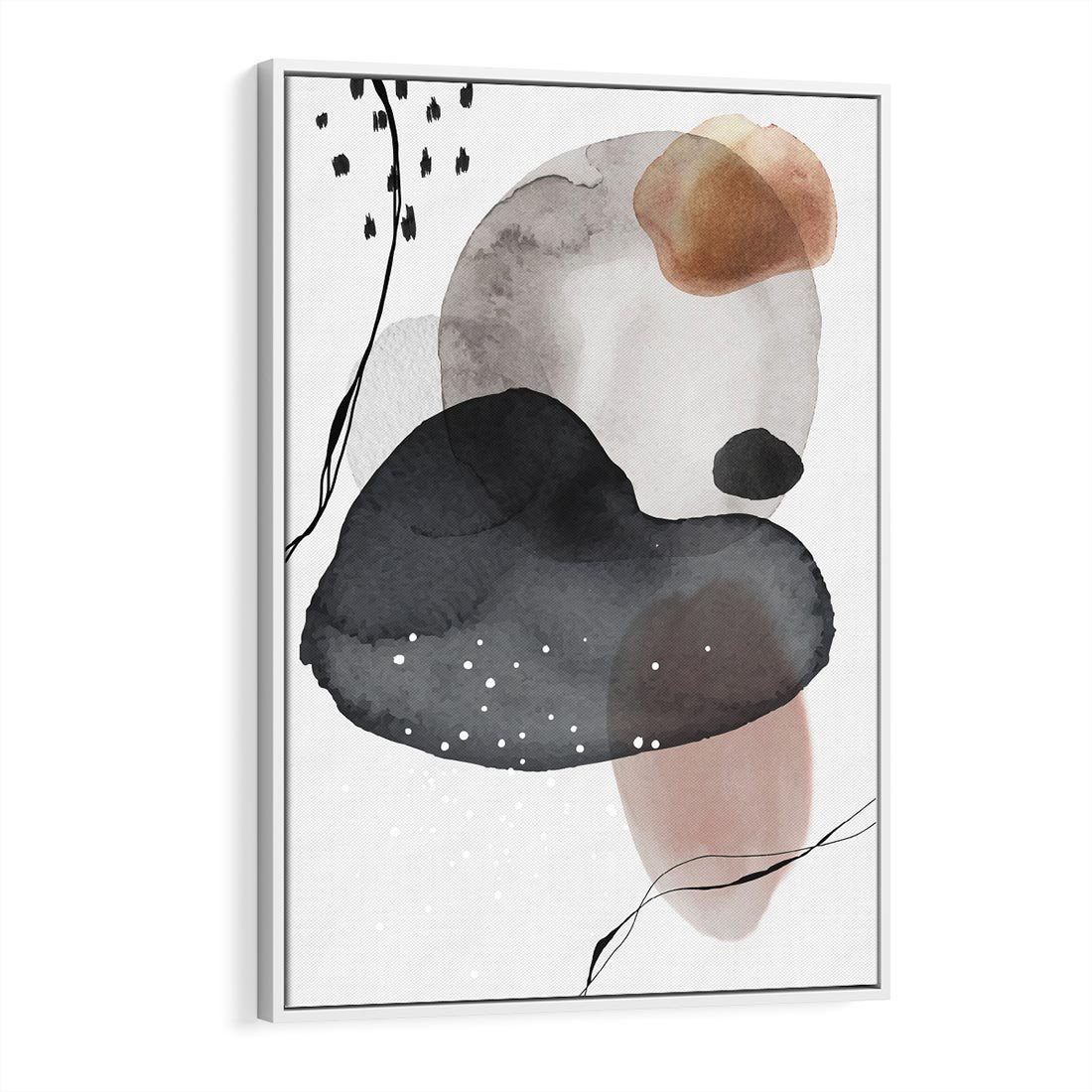 Obraz w ramie 70x100 - Impresje Harmonii - abstrakcyjne plamy akwarelowe, czarny szkic - rama biała