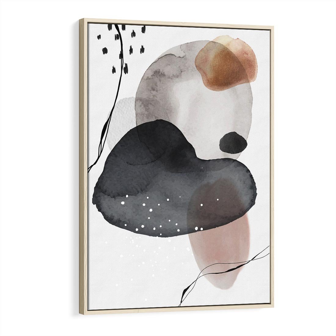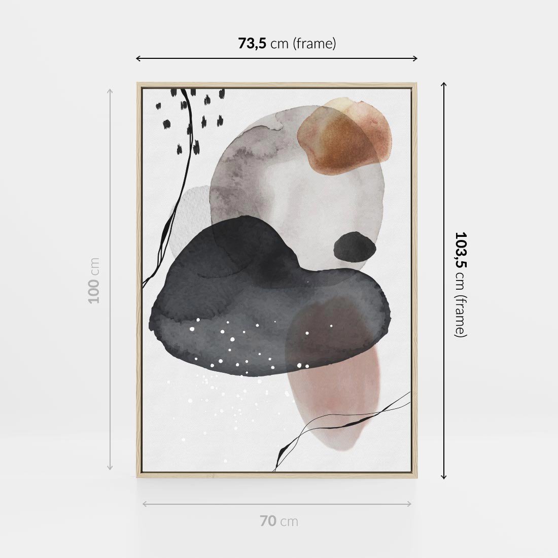 Obraz w ramie 70x100 - Impresje Harmonii - abstrakcyjne plamy akwarelowe, czarny szkic - rama drewno
