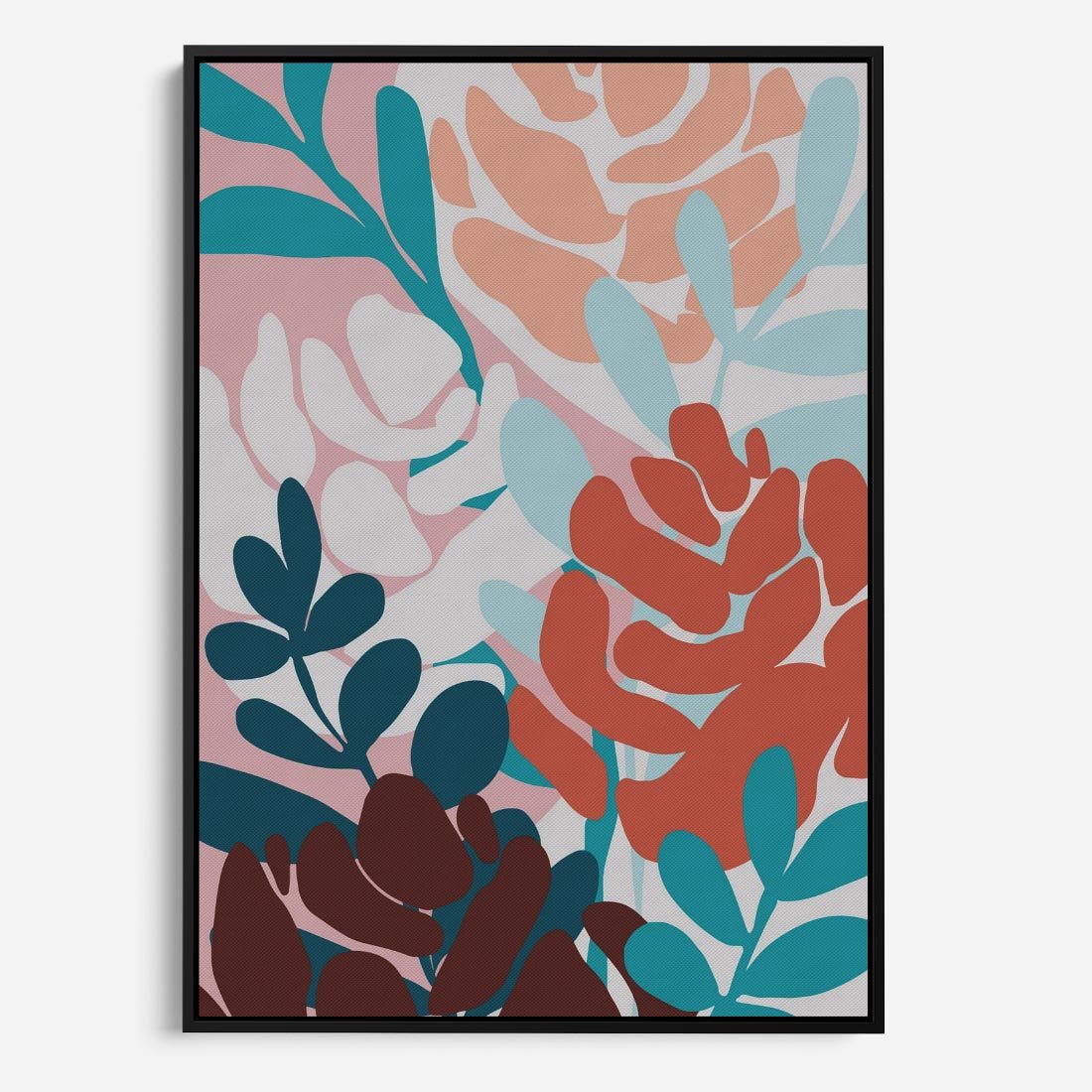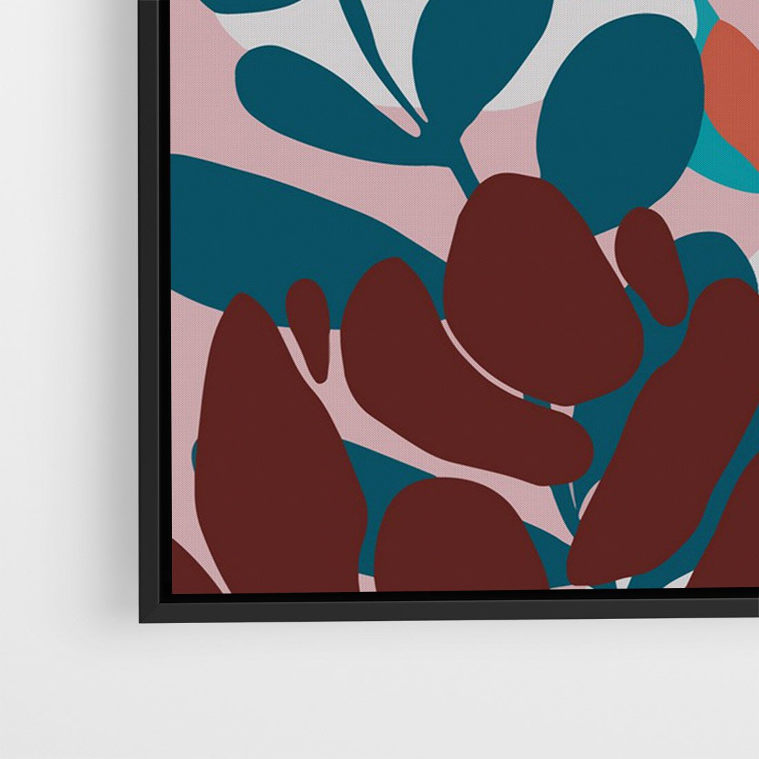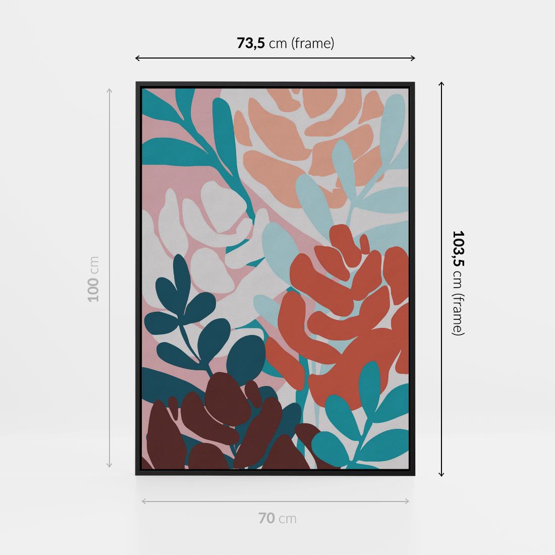 Obraz w ramie 70x100 - Impresje Kształtów - abstrakcyjna kompozycja kwiatowych form, kolor zgaszone - rama czarna