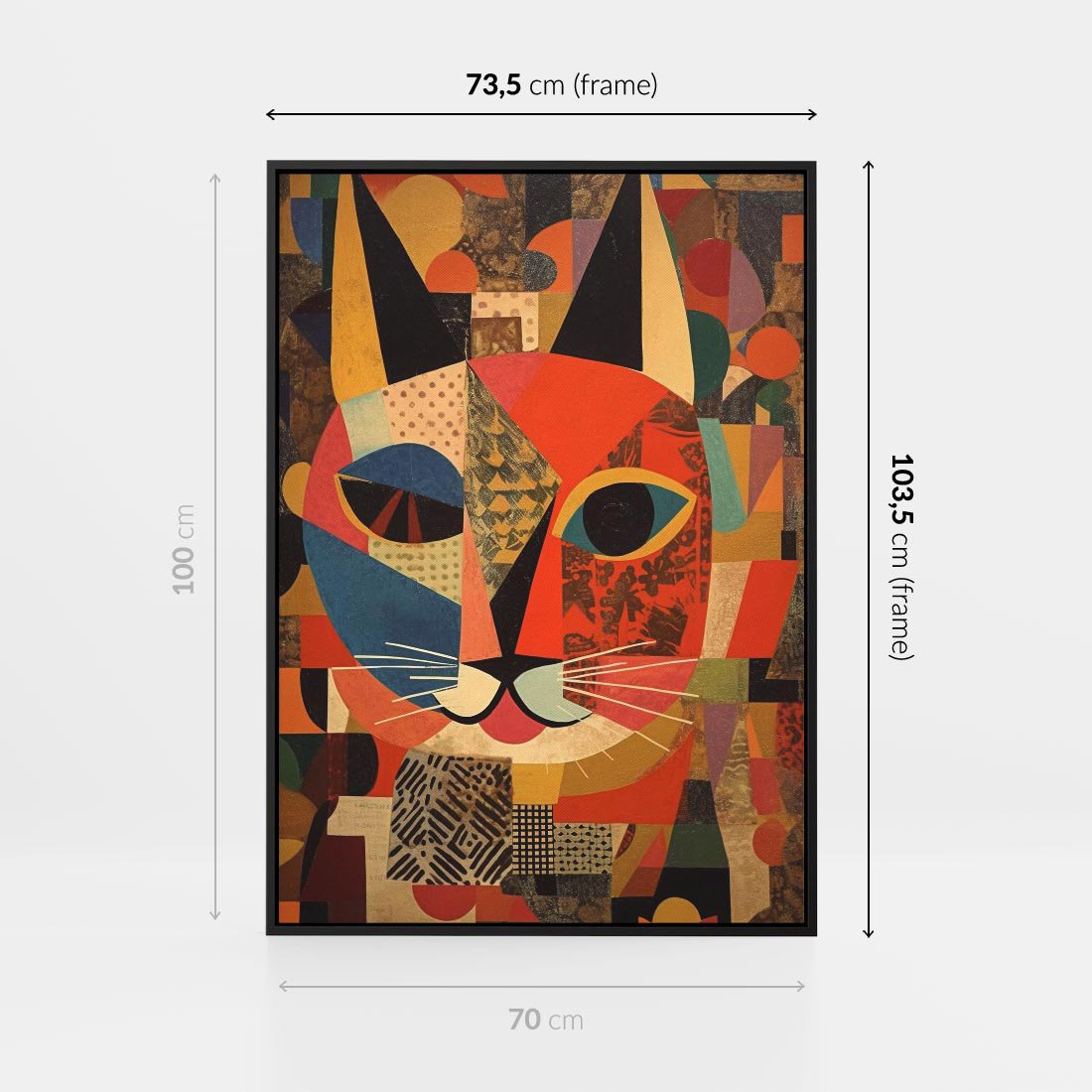 Obraz w ramie 70x100 - Impresje Nieznanych Odniesień - abstrakcyjny obraz olejny, kot - rama czarna
