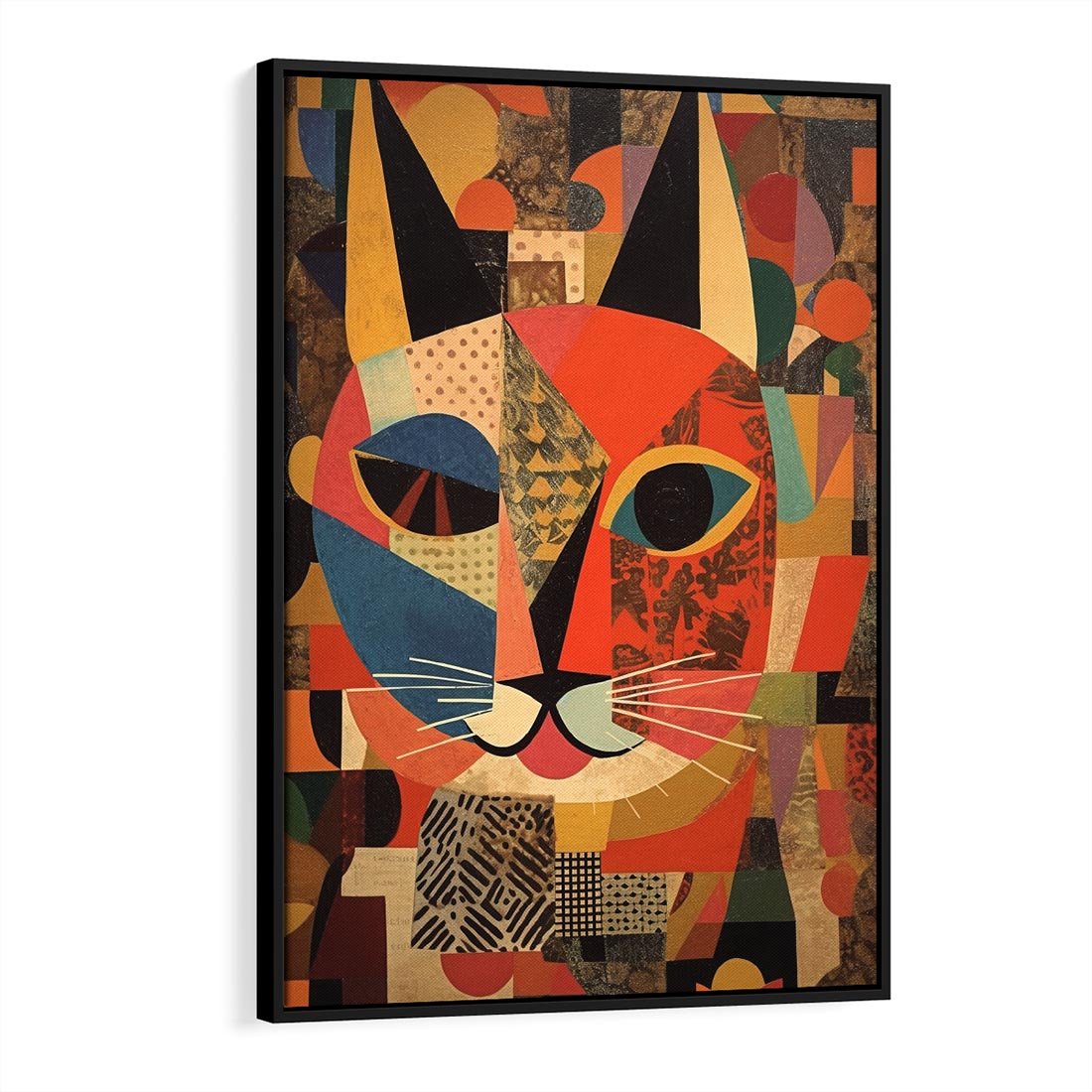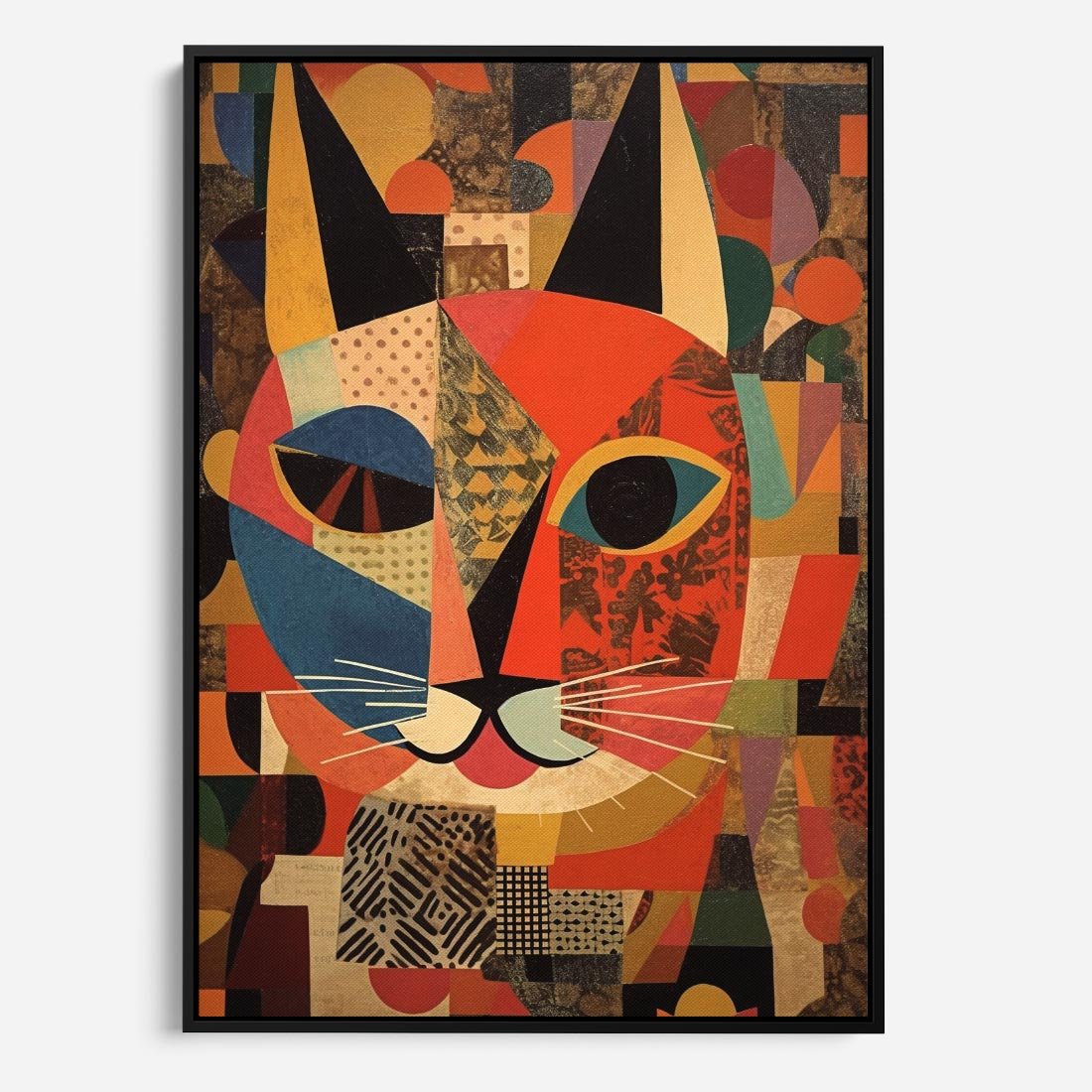 Ten abstrakcyjny obraz olejny przedstawia kota w stylu przypominającym dzieła Picassa. Kontrast pomiędzy kocim profilem a ciemnym tłem tworzy intrygującą atmosferę, oddającą niekonwencjonalne piękno zwierzęcia.
